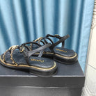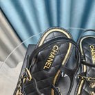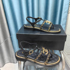 sandal leather strap black quilted calfskin mop gold chain