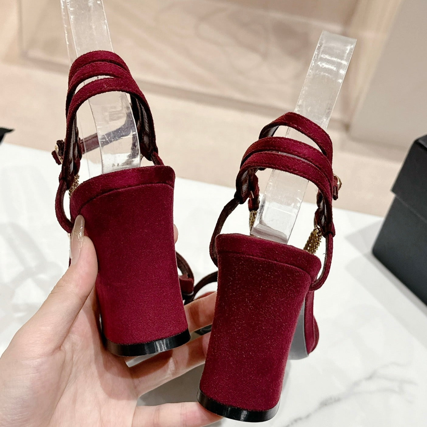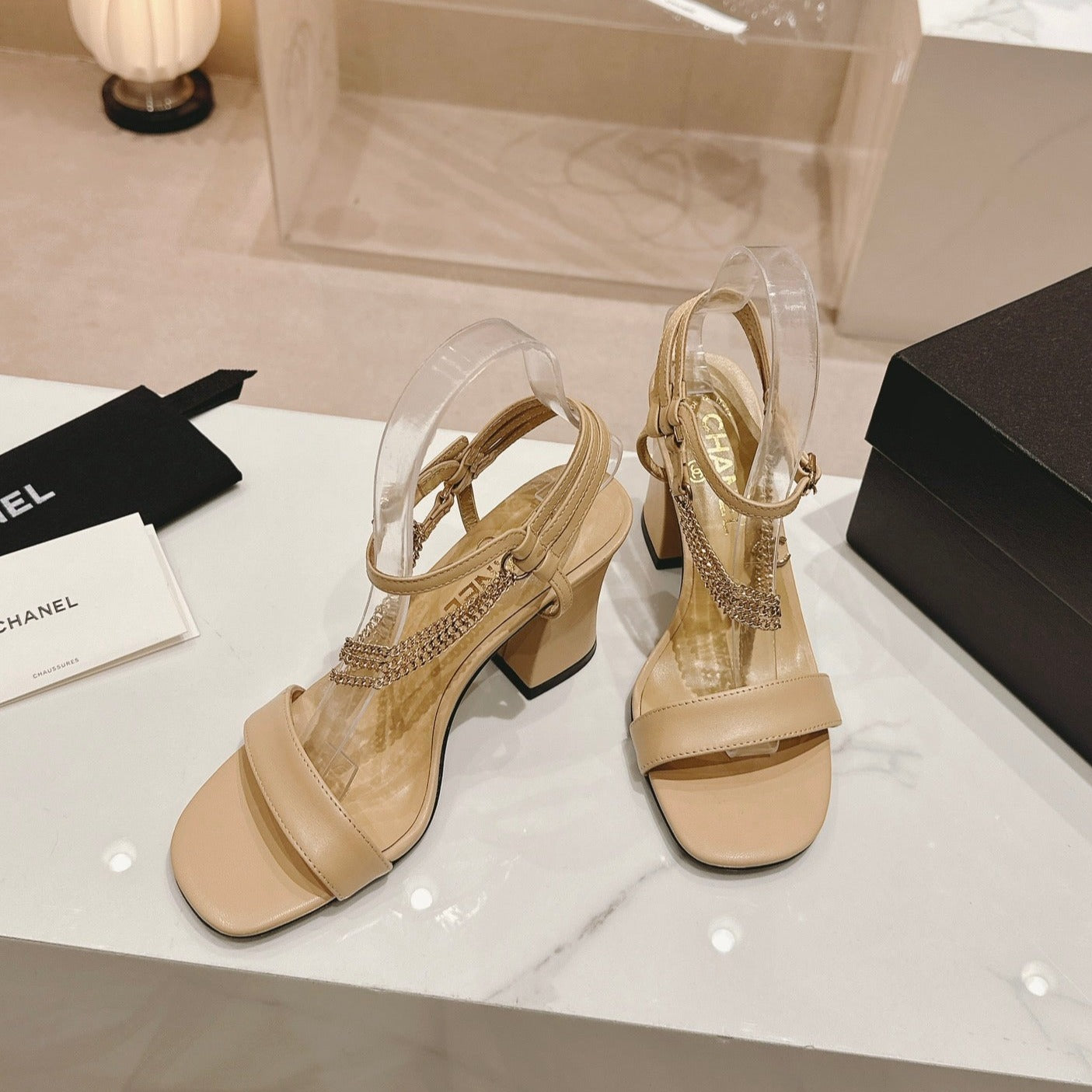 CC Little Camellia World Thin High Heels Tan Brown Lambskin