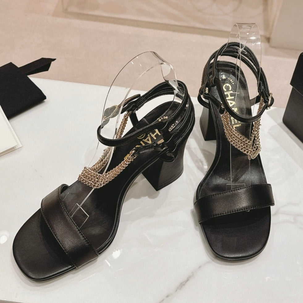 CC Little Camellia World Thin High Heels Gold Lambskin
