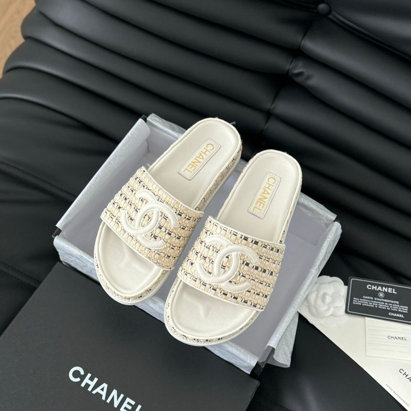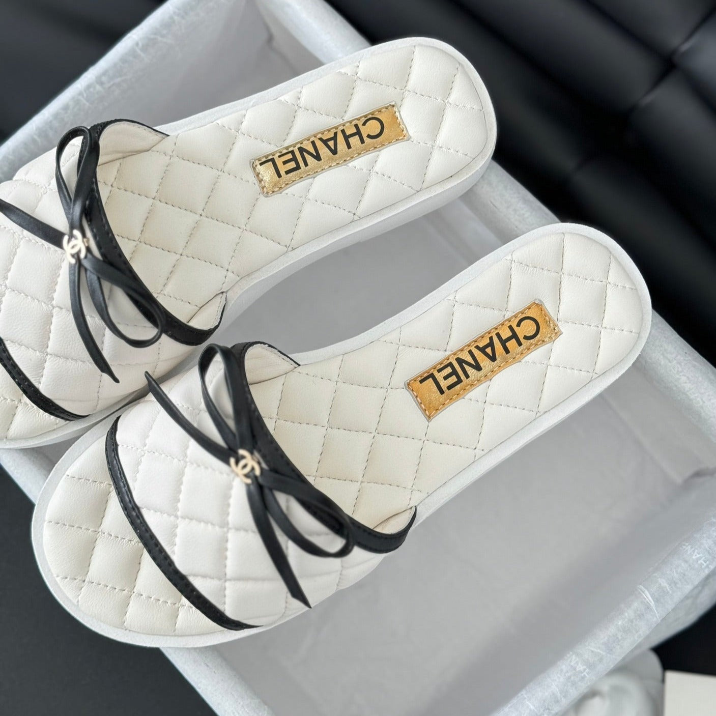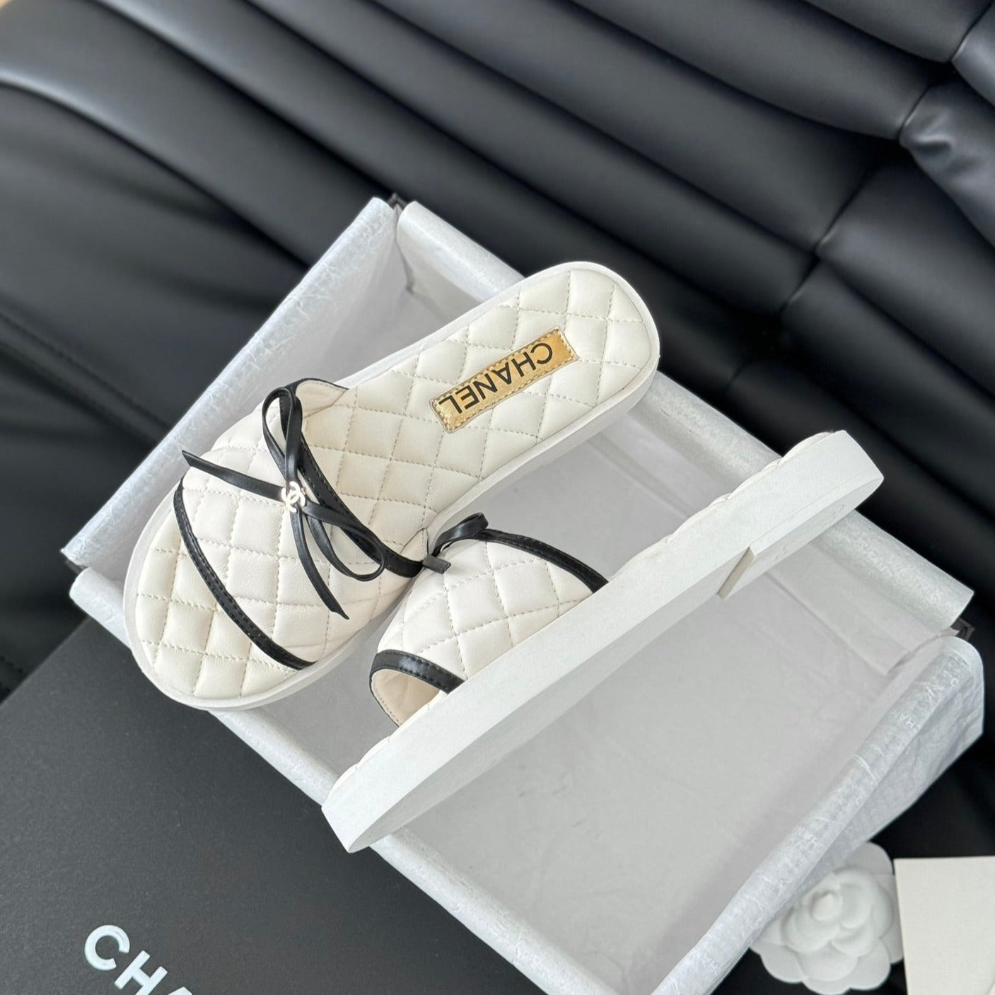 Double C Classic One-Strap Sandals White Gray Smoke Lambskin