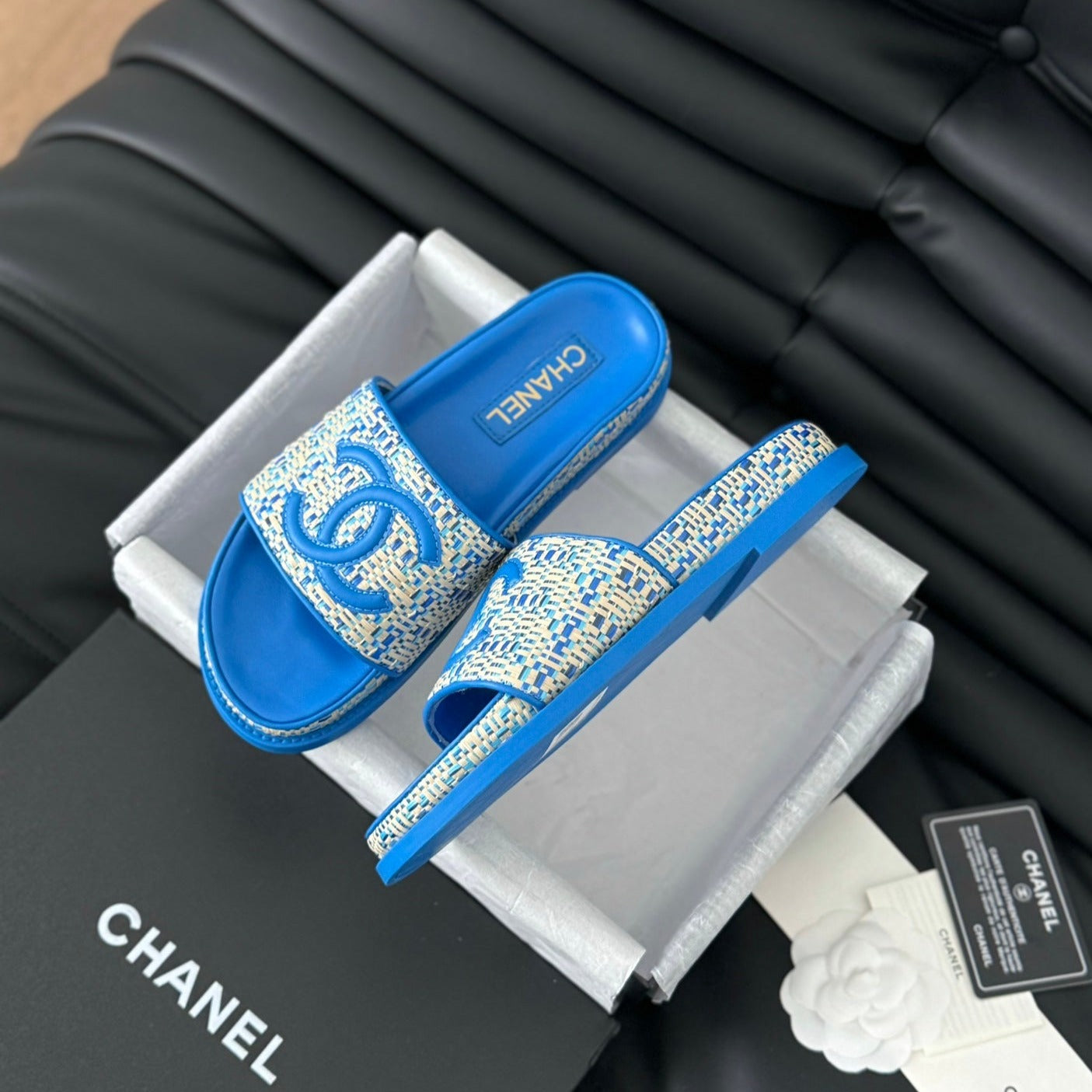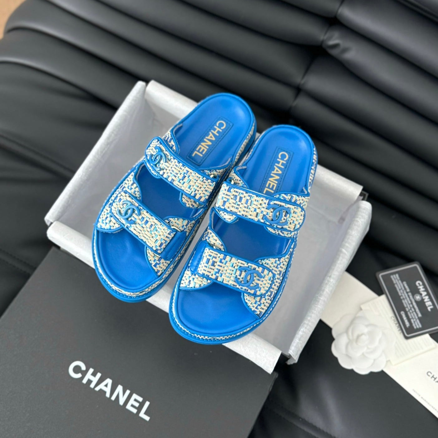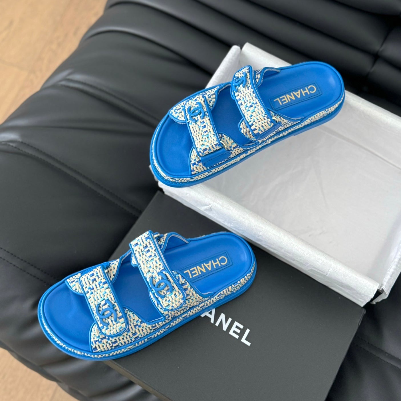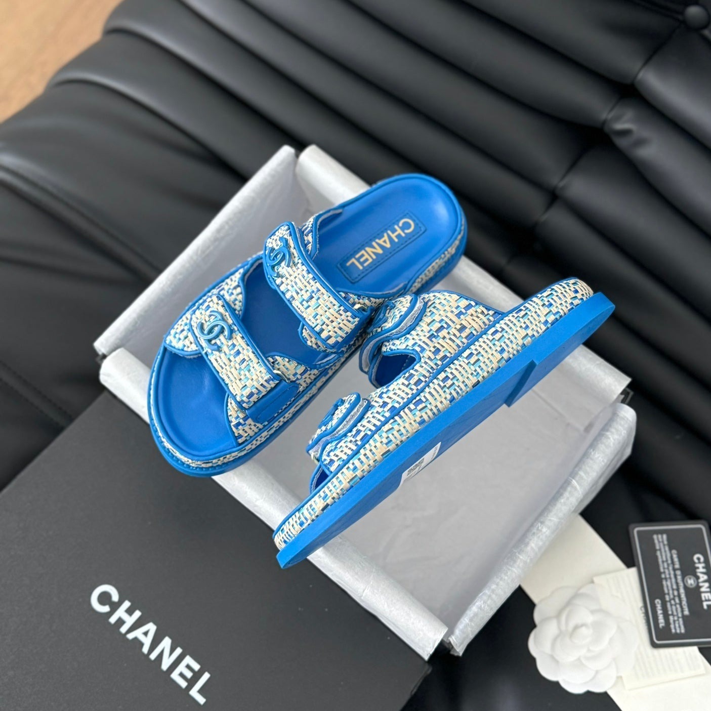 Double C Classic One-Strap Sandals White Navy Blue Lambskin