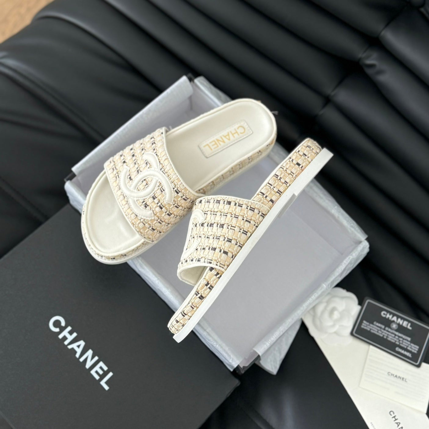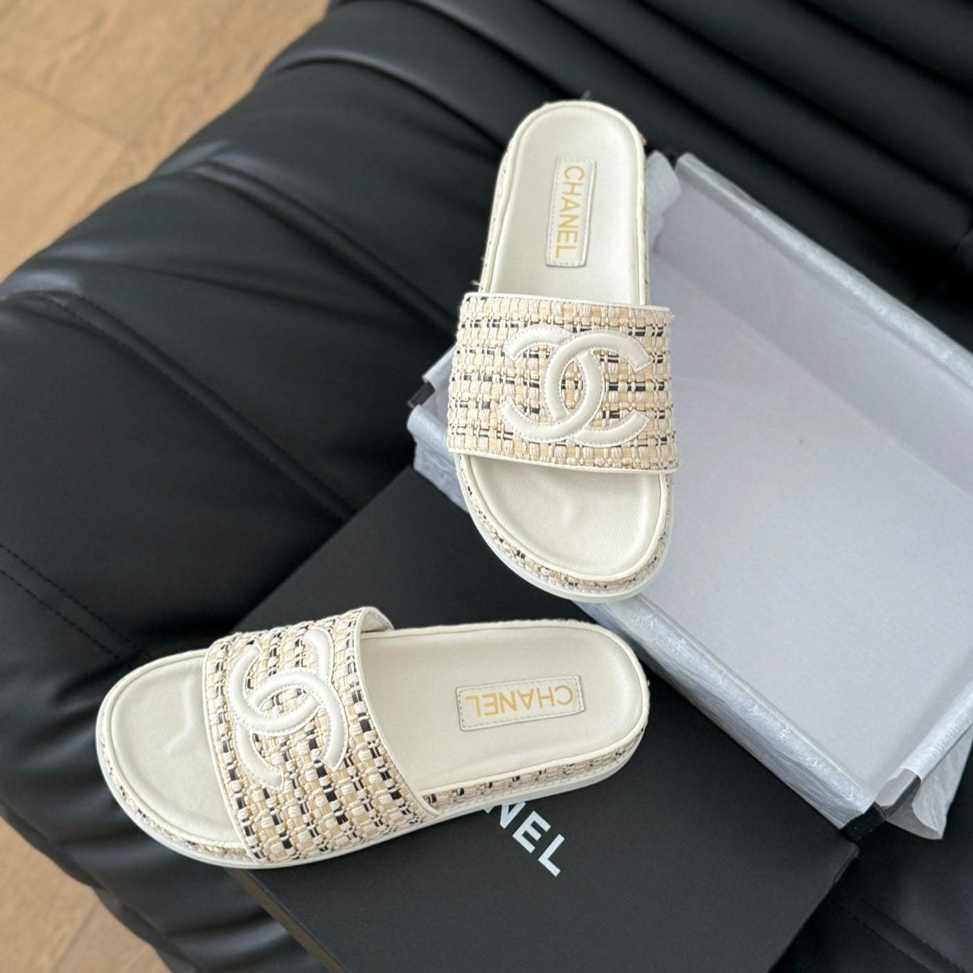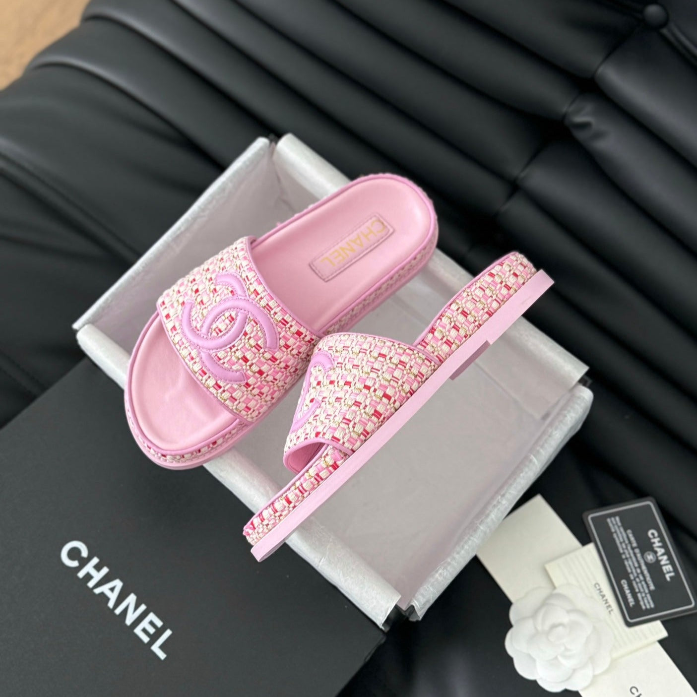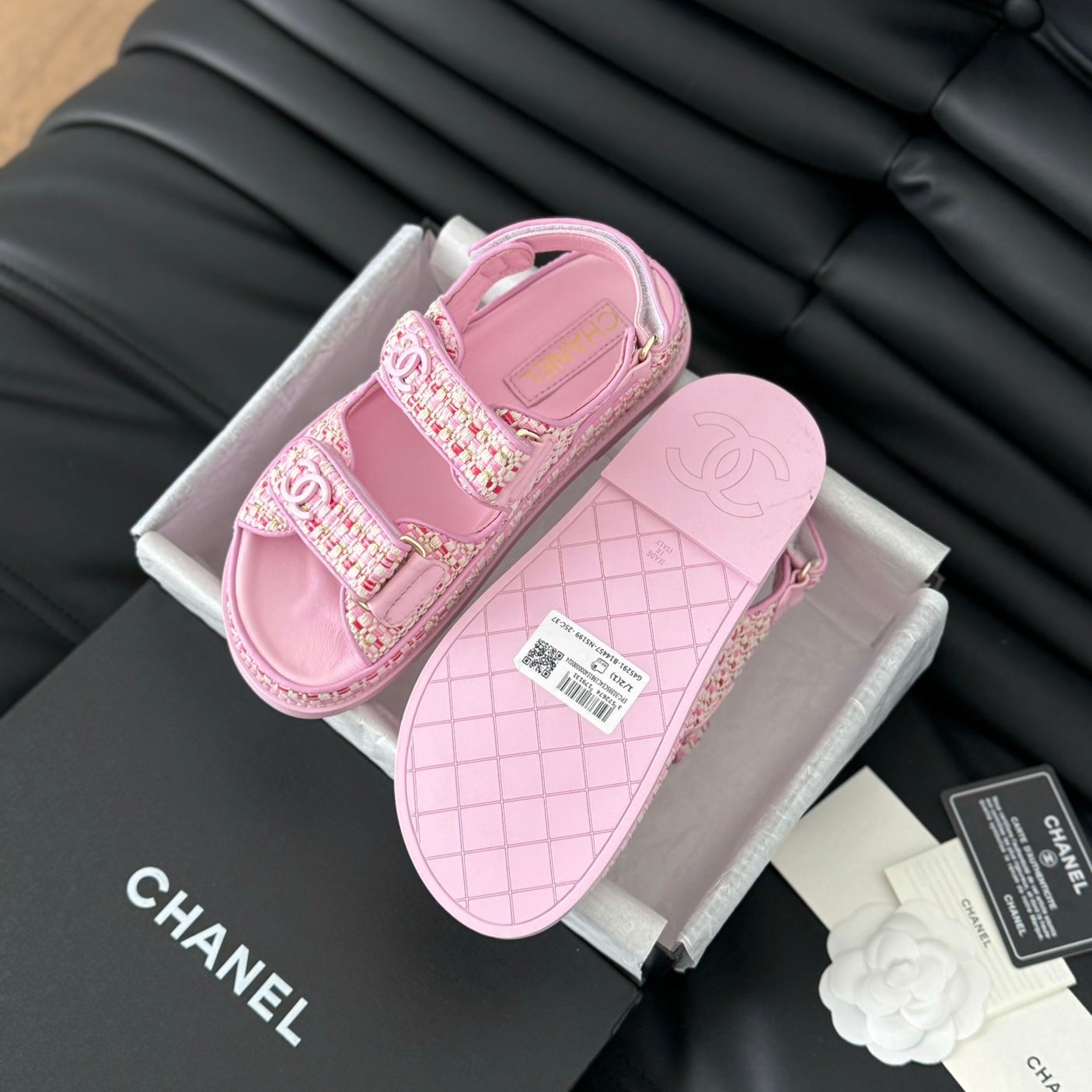 Double C Classic One-Strap Sandals White Pink Lambskin