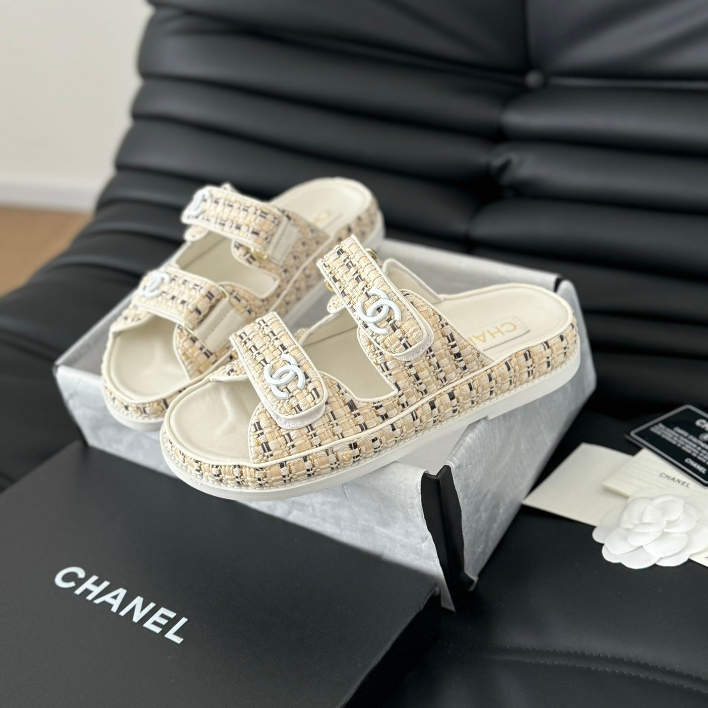 Double C Classic One-Strap Sandals Tan Brown Lambskin