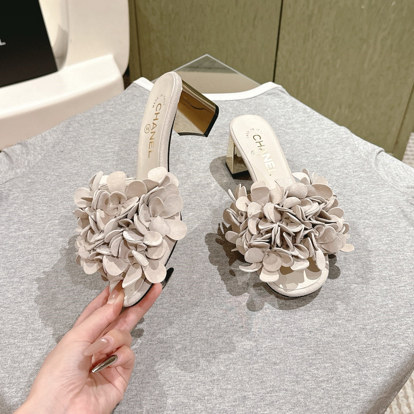 CC Floral Slide Sandals 55mm Light Taupe Suede Cowhide 454283