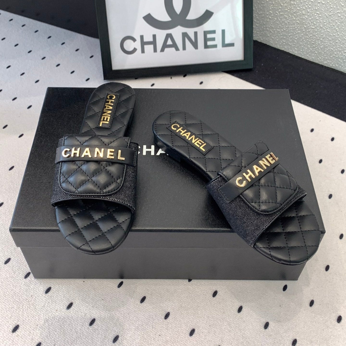 CC Slippers In Black Quilted Cowhide 147027