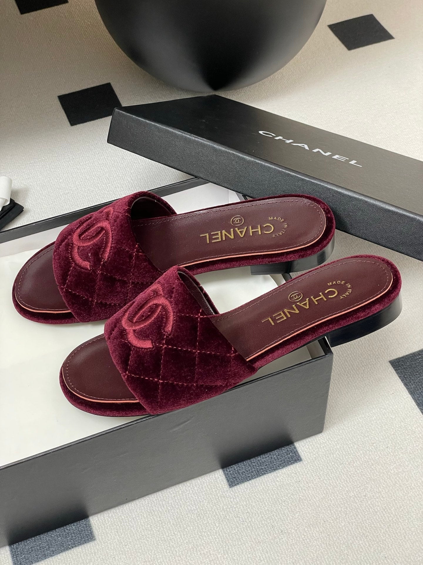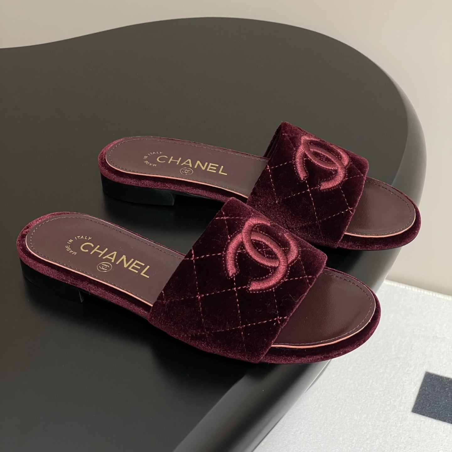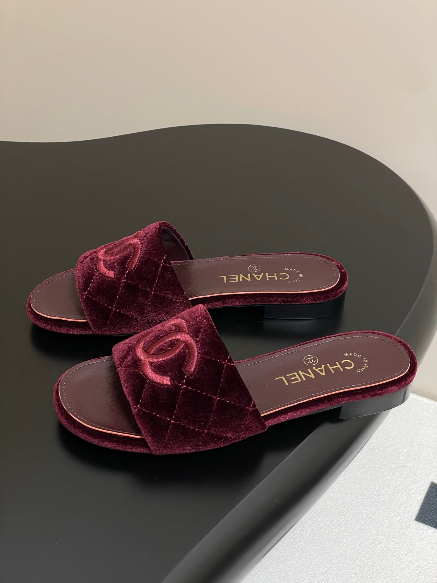 25S Embroidery Double C Mule 15mm Wine Velvet 247579