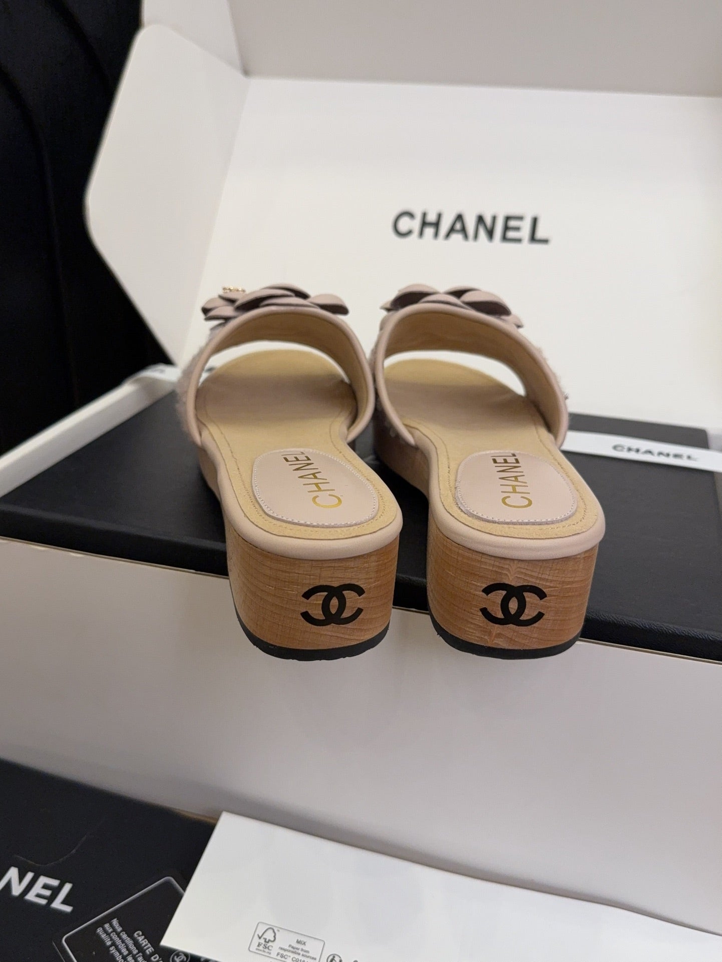 CC 25 Camellia Mule 40 Pink Tweed And Beige Leather 277717