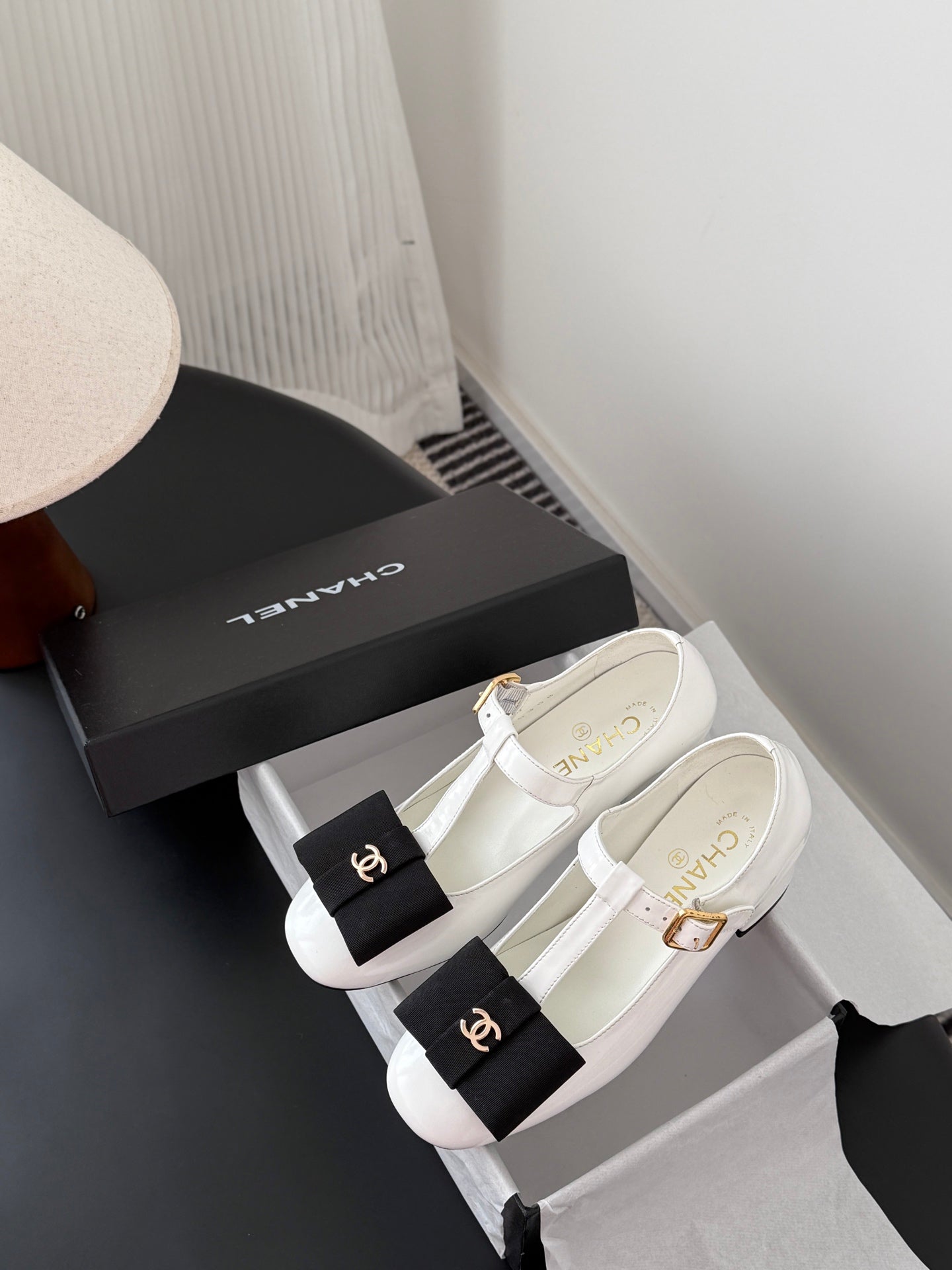 CC 25k Backpack Buckle Shoes White Patent Leather 540839