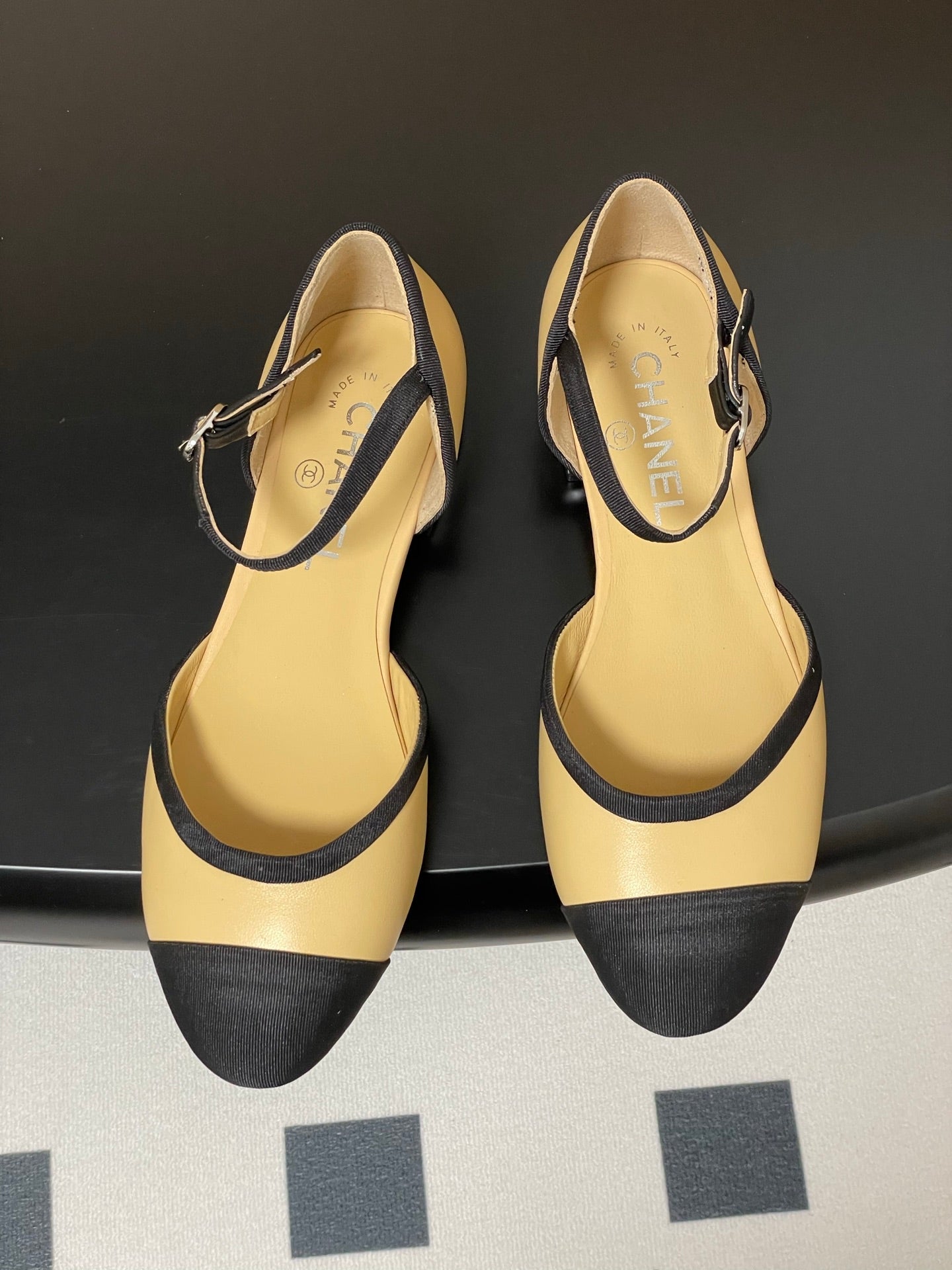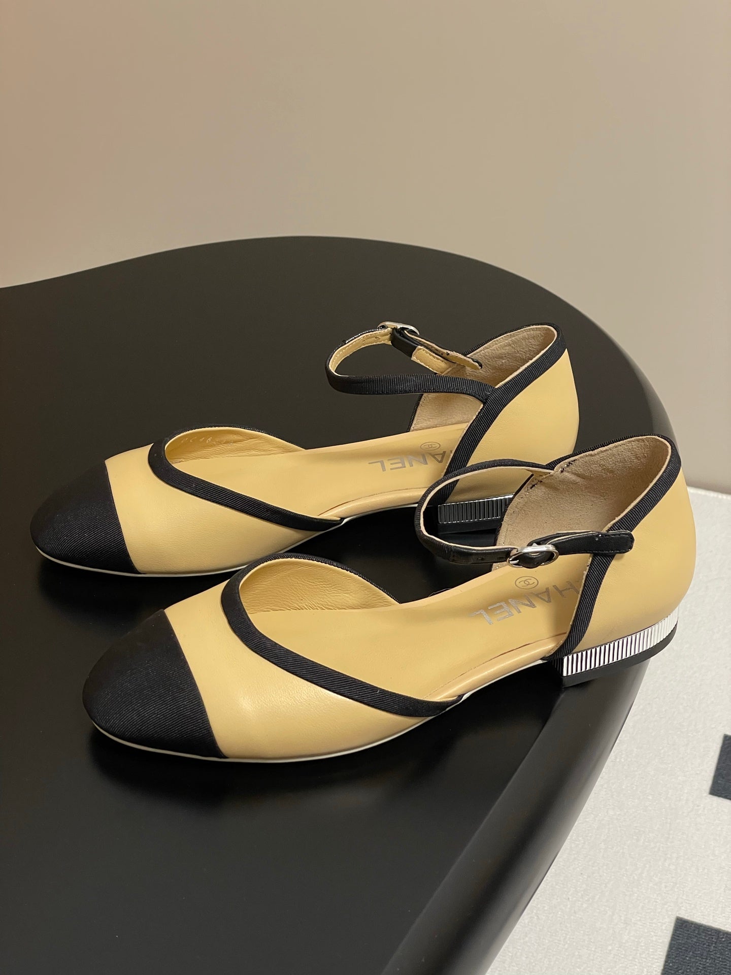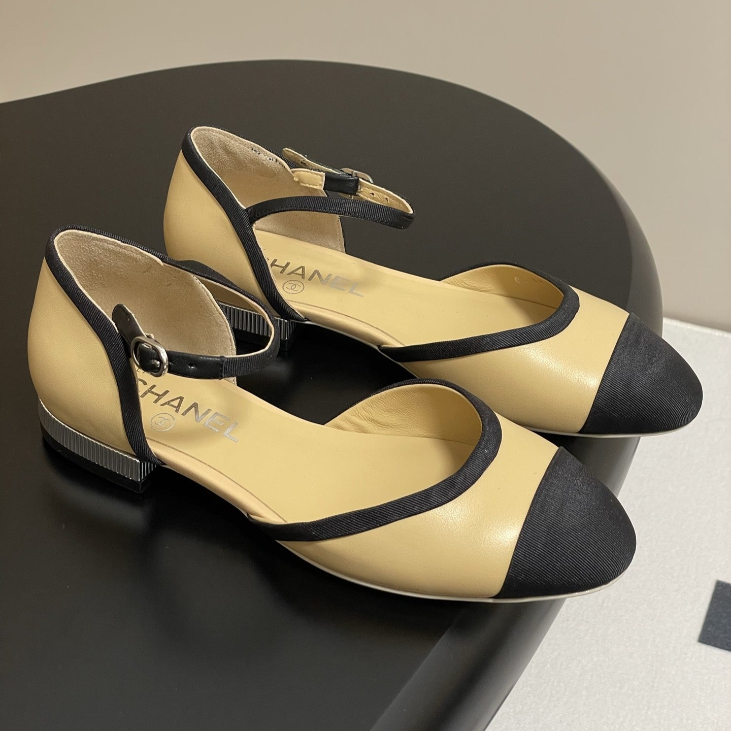CC 25P Small Hollow Mary Jane Beige Sheepskin Black Grosgrain 247724