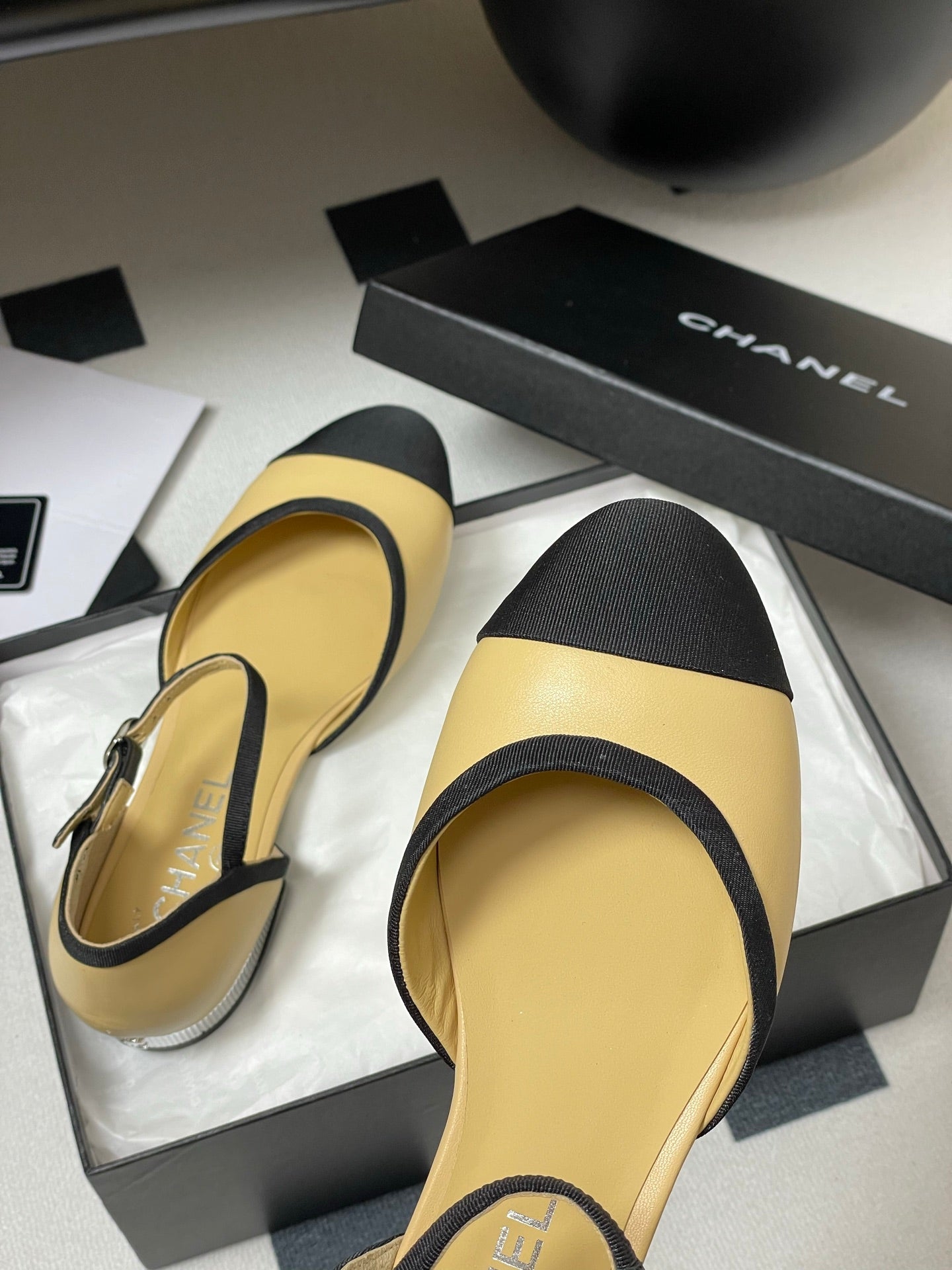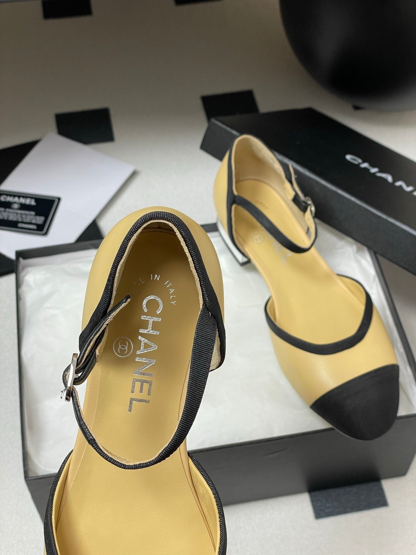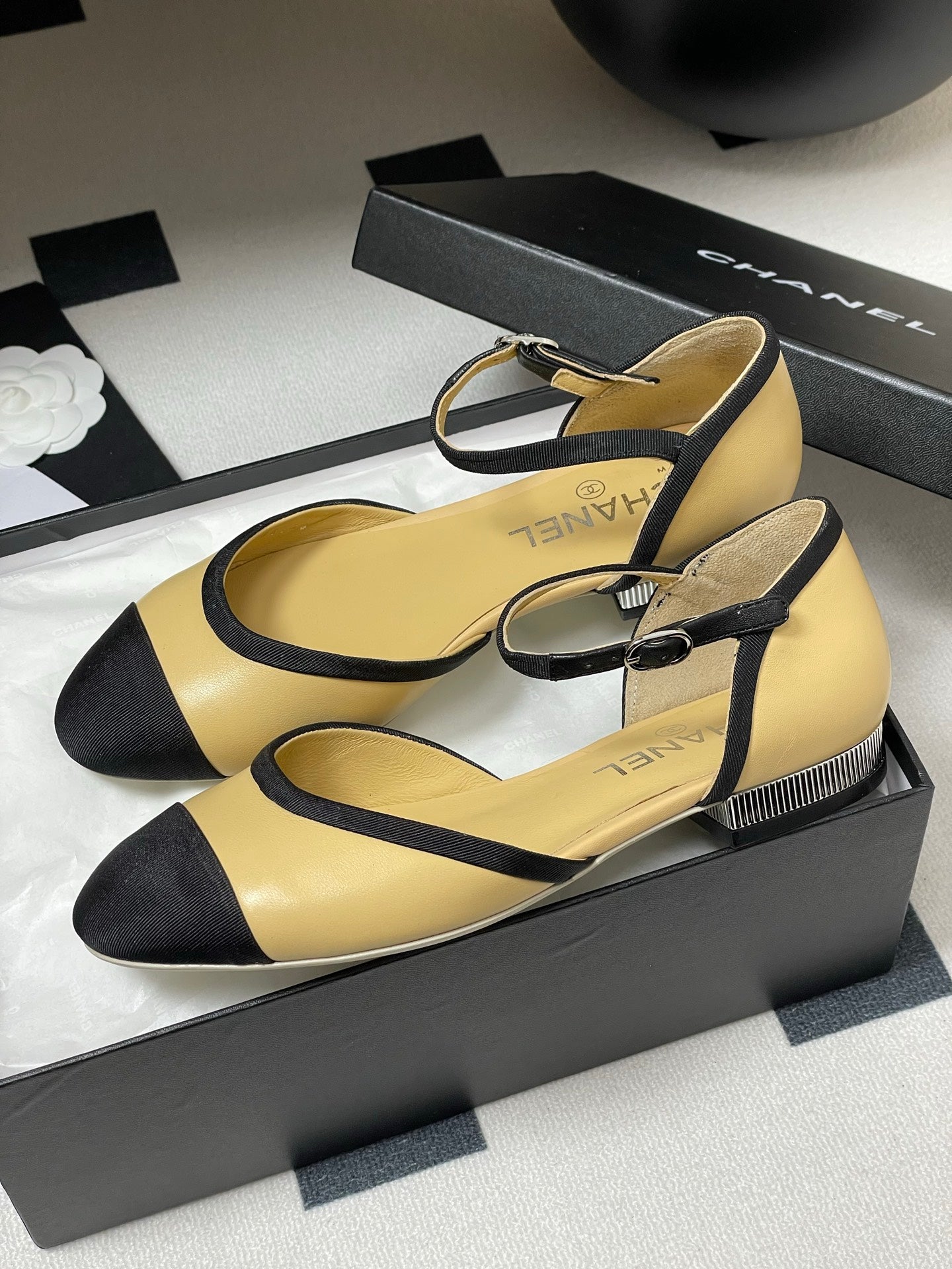 CC 25P Small Hollow Mary Jane Beige Sheepskin Black Grosgrain 247724