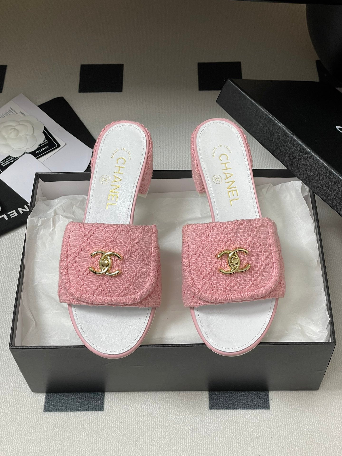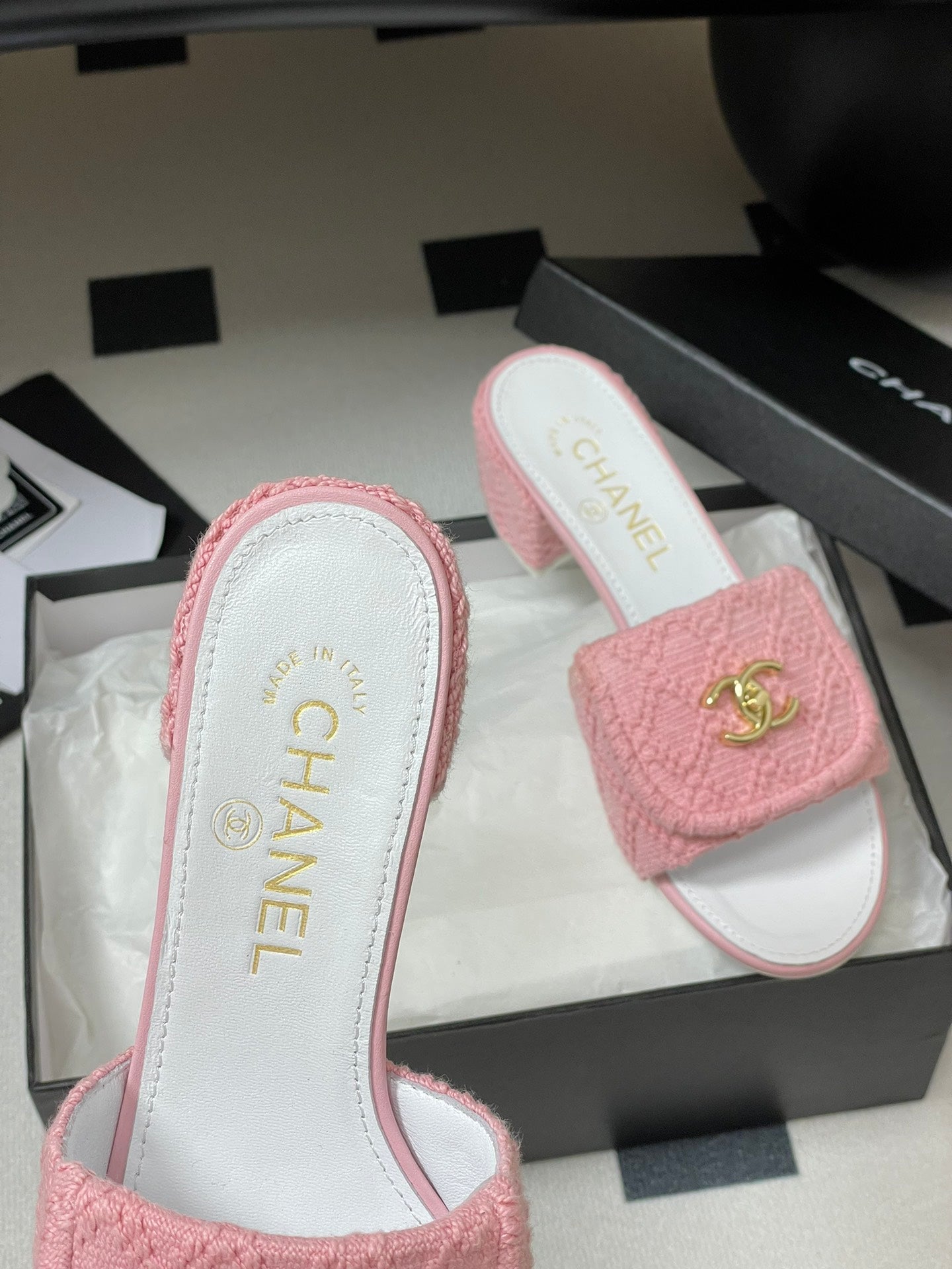 CC 25S Buckle Bag Mule Sandal 50mm Pink Fabric and White Sheepskin 247602