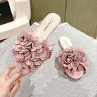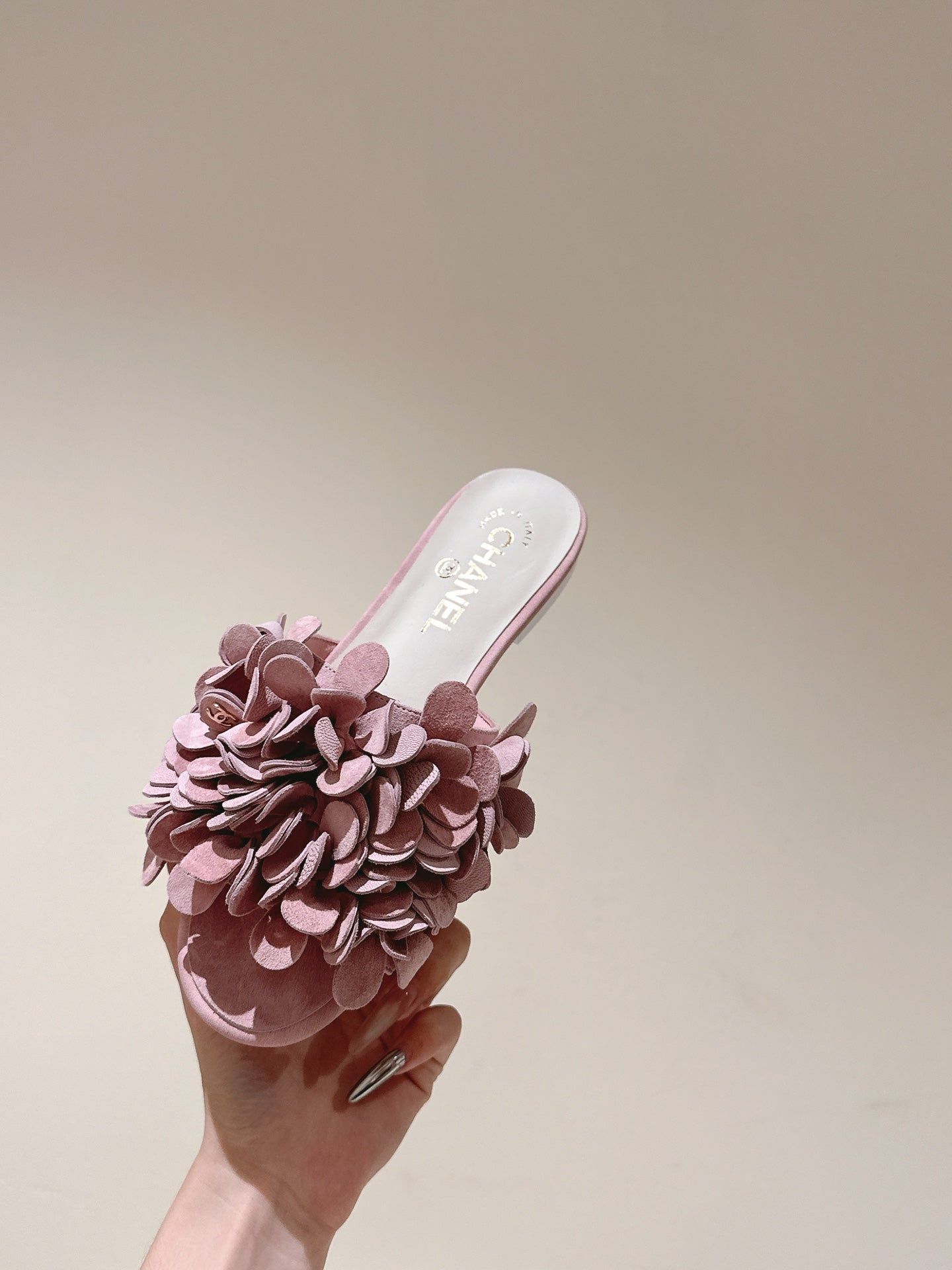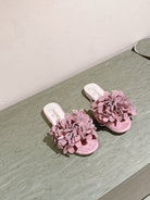 CC Floral Slide Flat Pink Suede Cowhide 454281