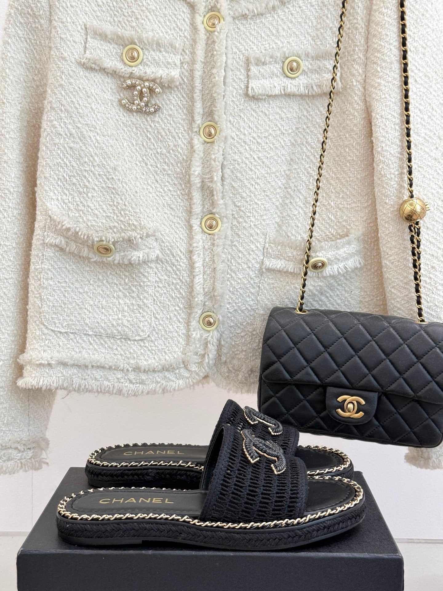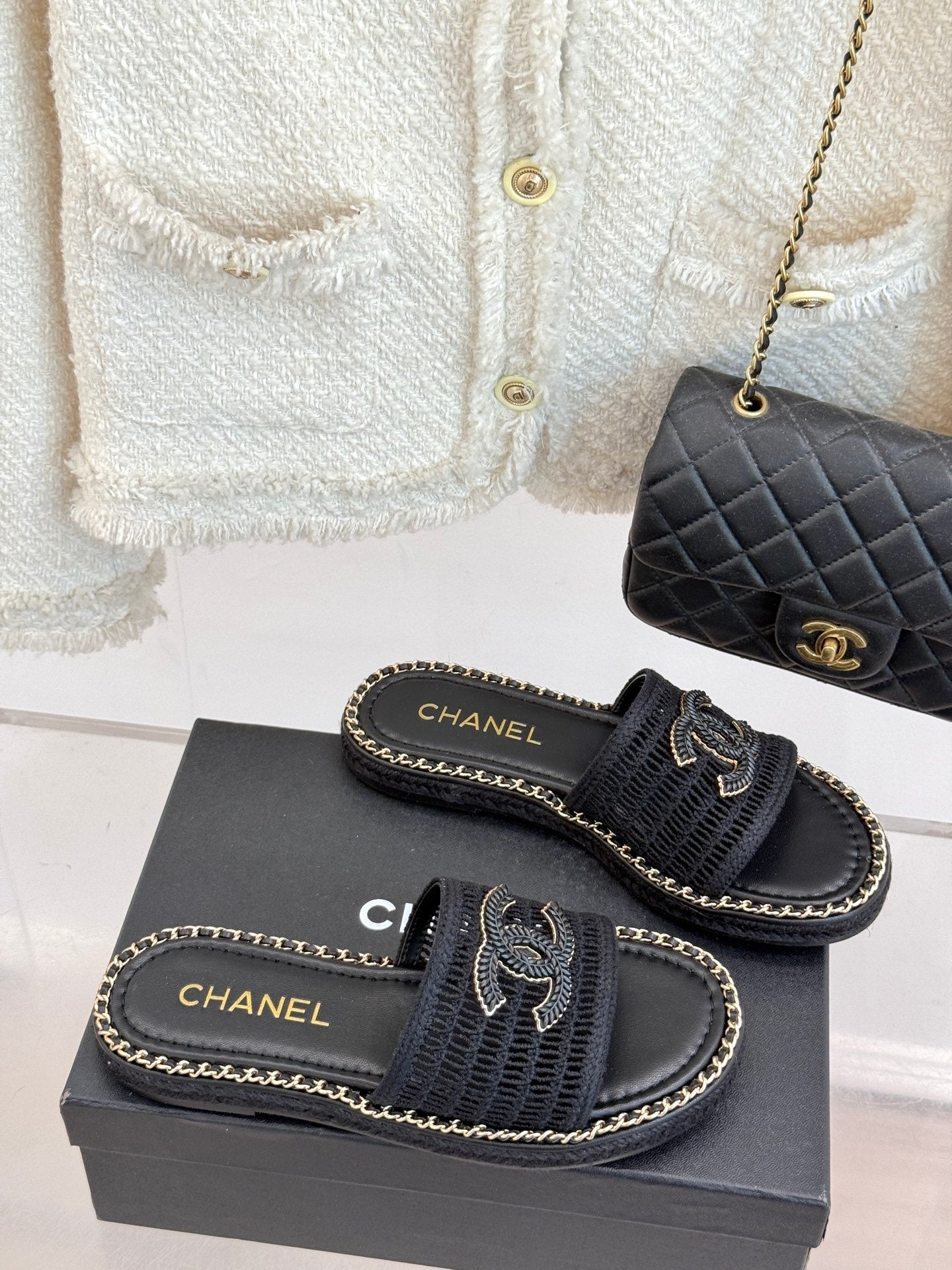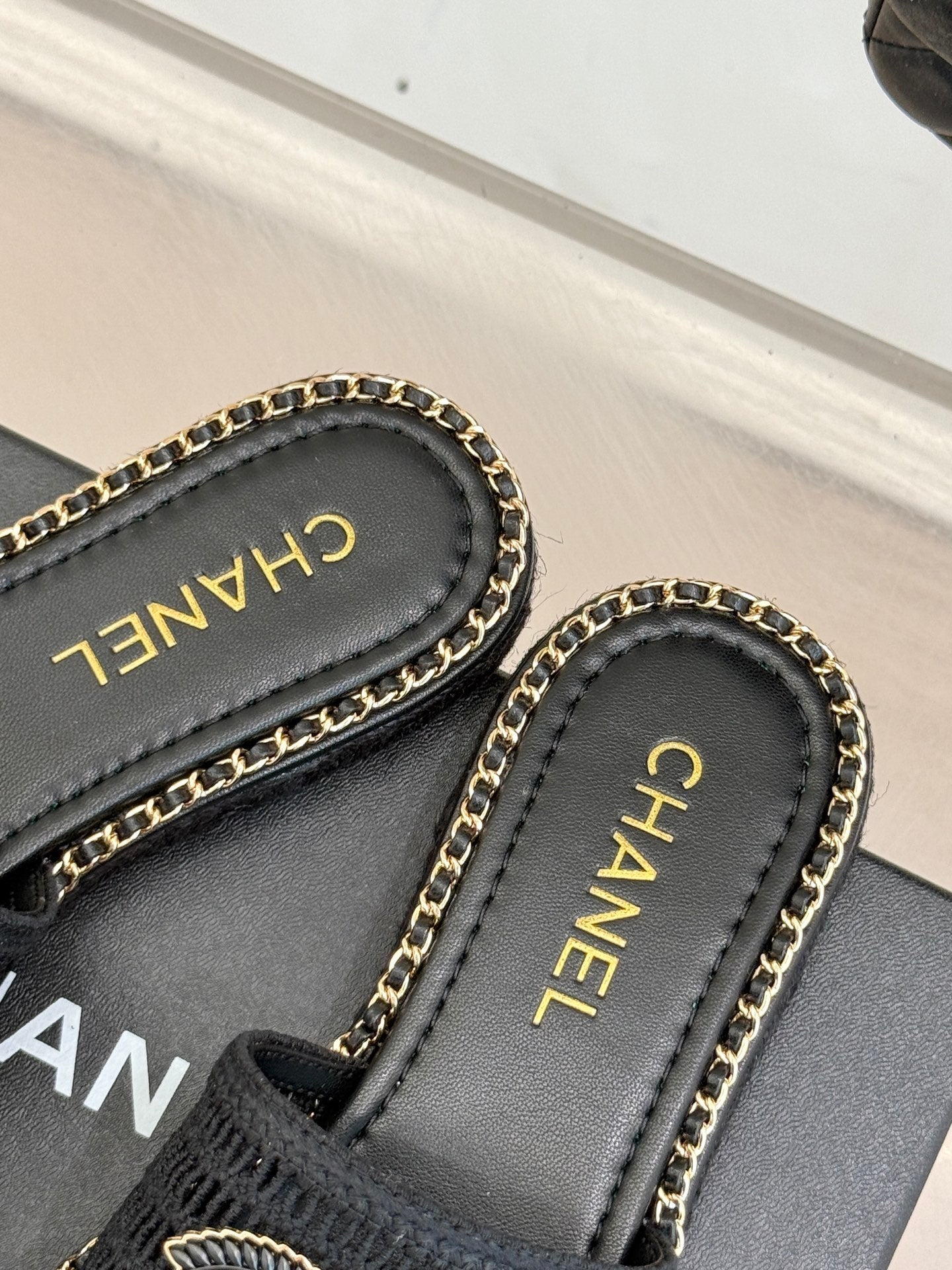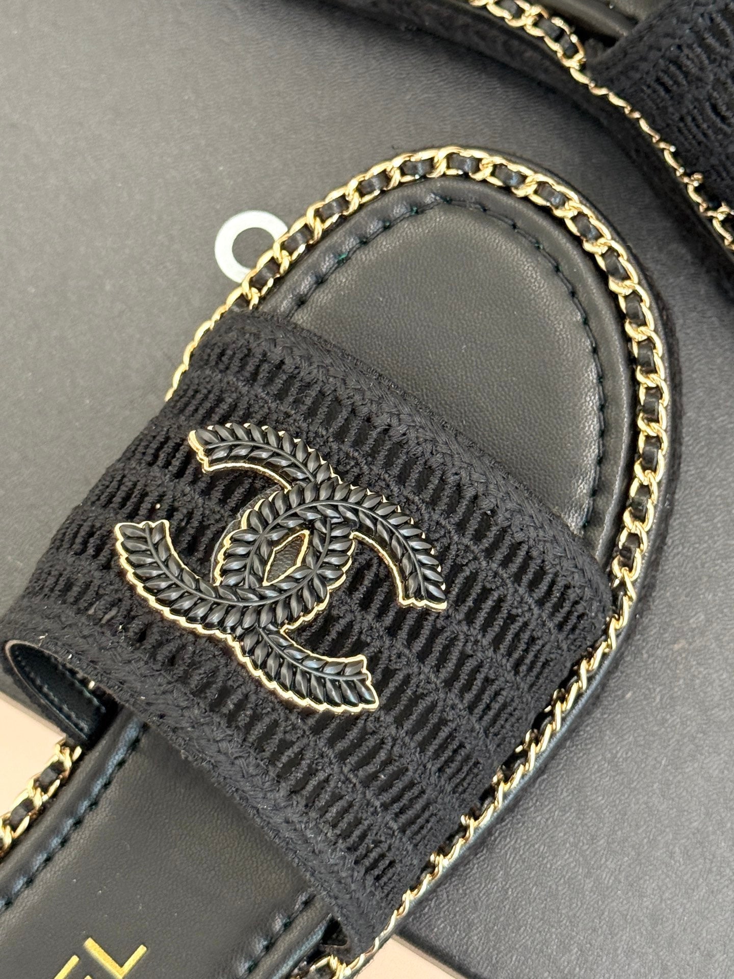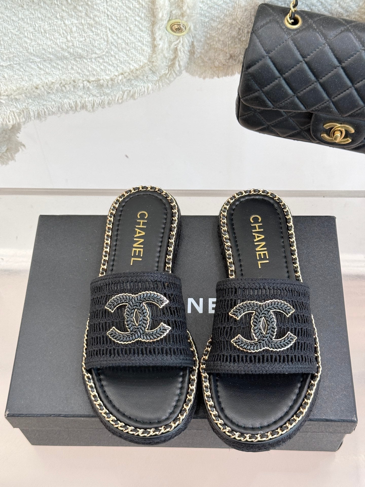 CC Mesh Hollow Chain Double C Thick-Soled Slippers 20mm Black 265647