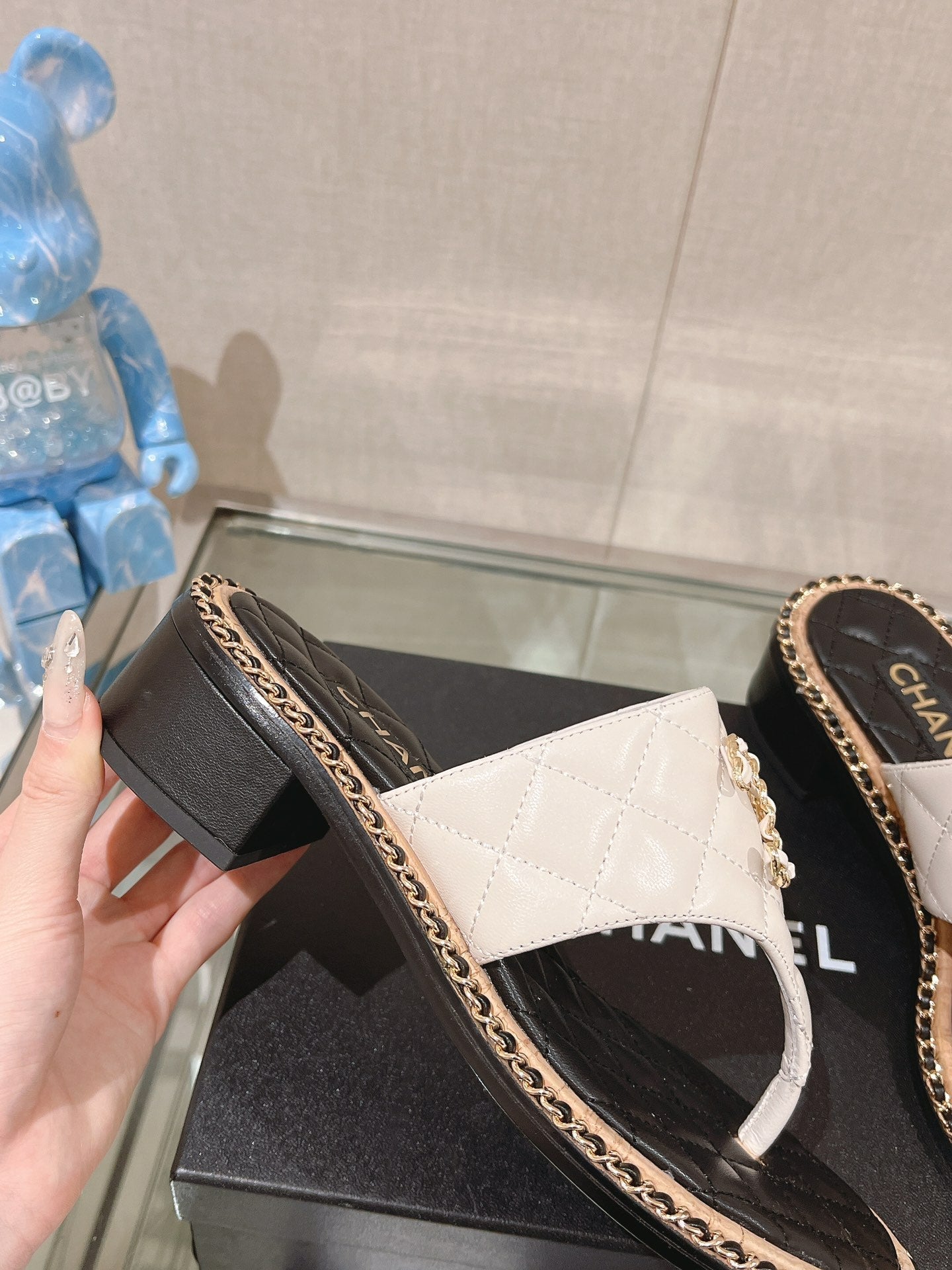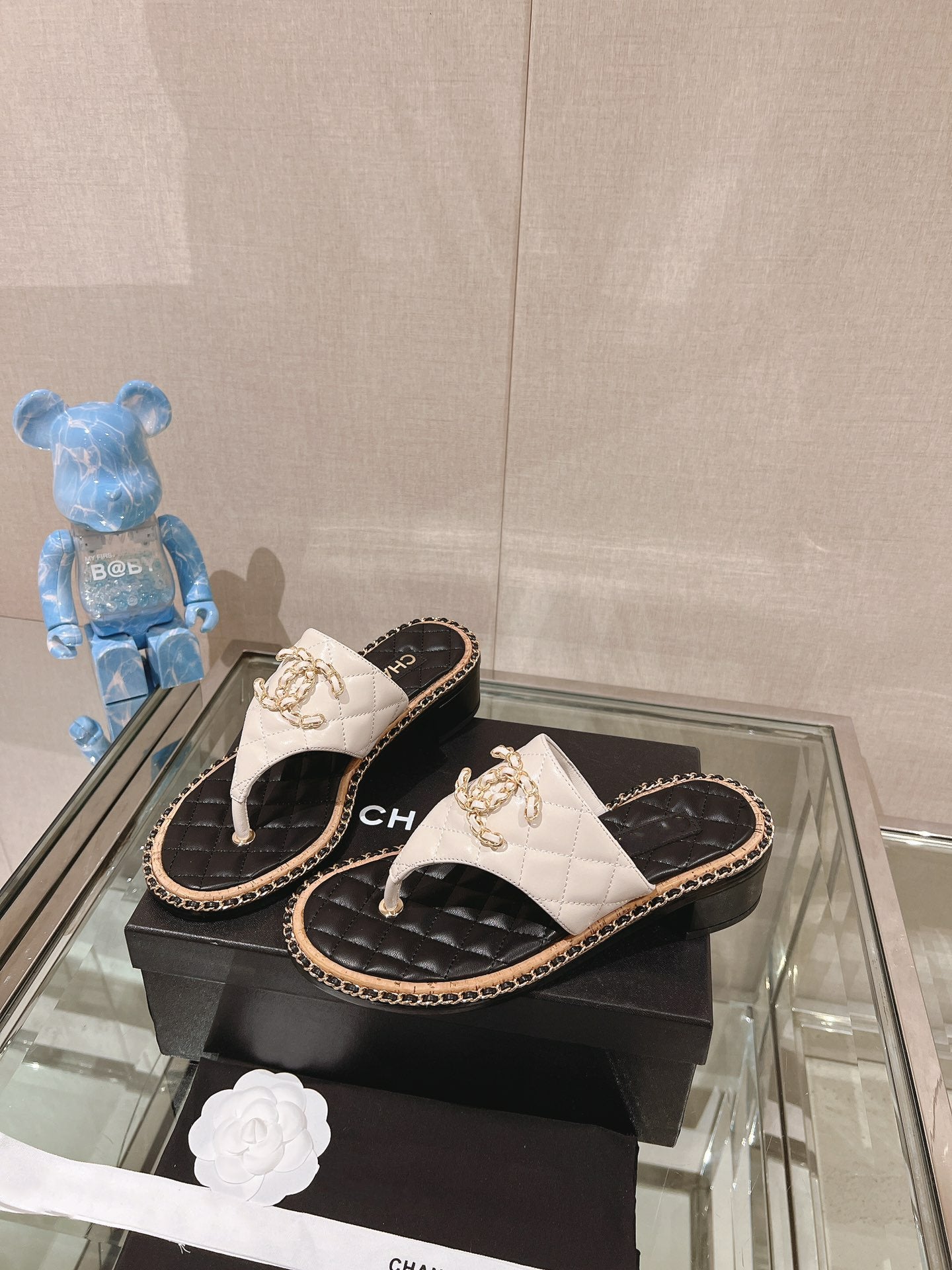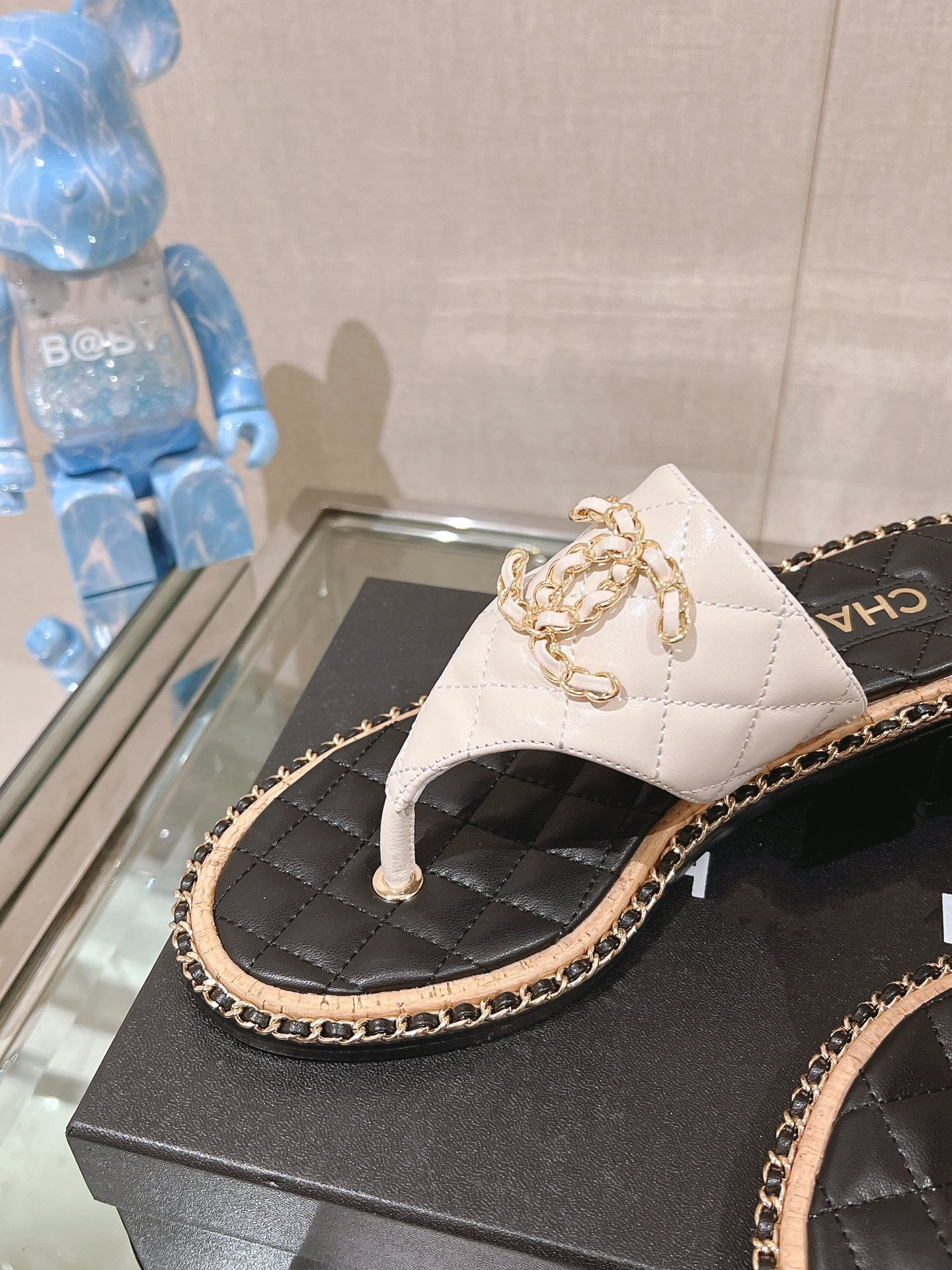 cc thong sandal 50 white black quilted lambskin