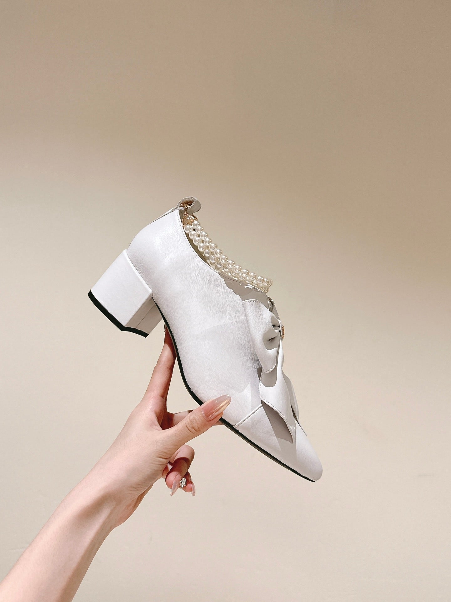 CC 24A Pearl Bow Slingbacks 65mm White Sheepskin 447467