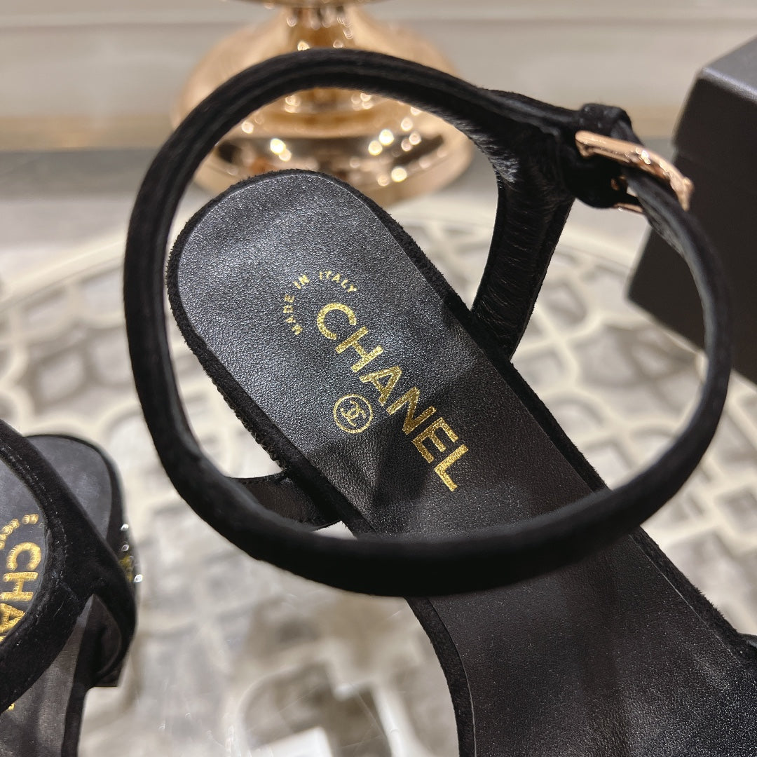 CC 25C 5CM Mid Heed Sandals Black Suede 213327