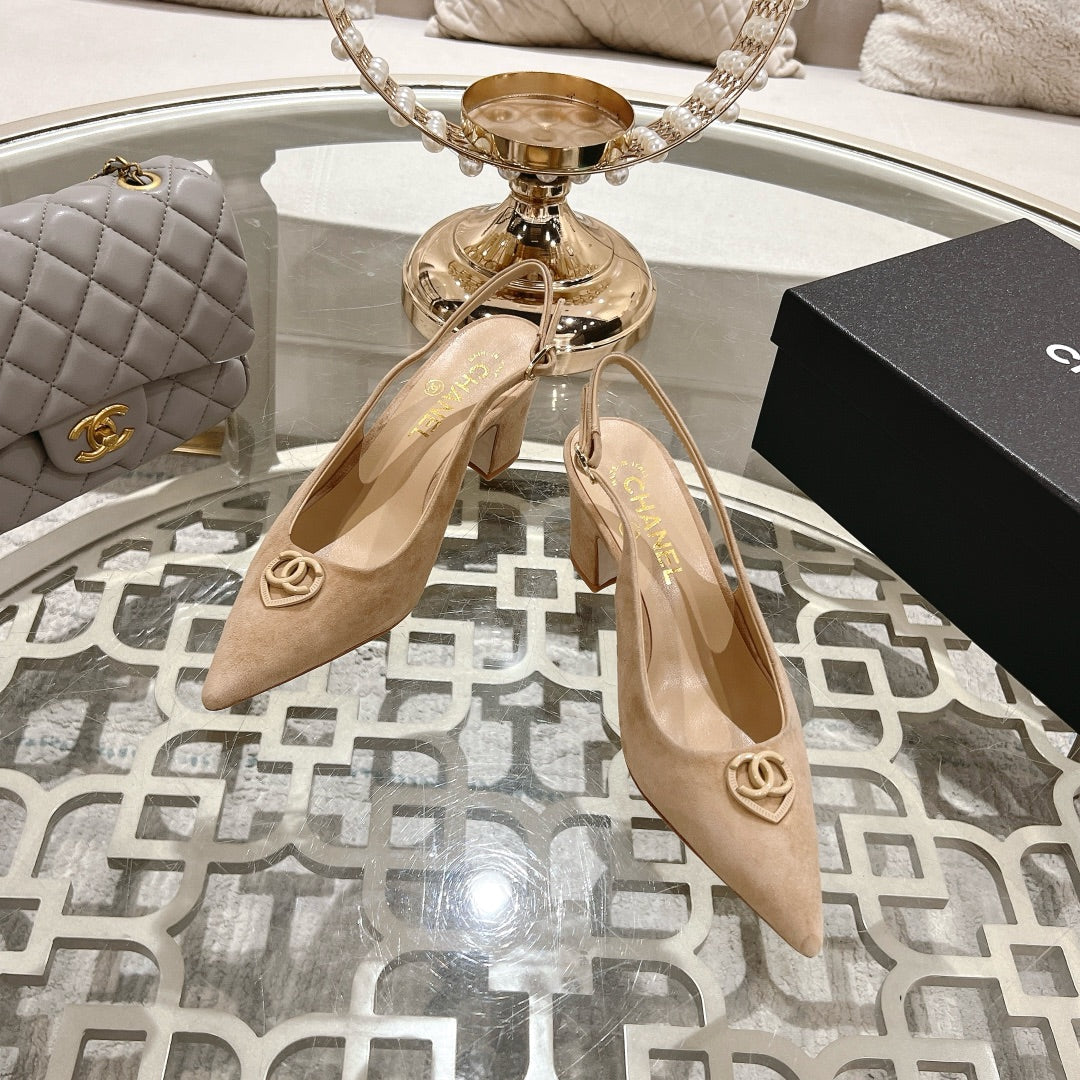 CC 25C Slingback Flats Cream Suede 213334
