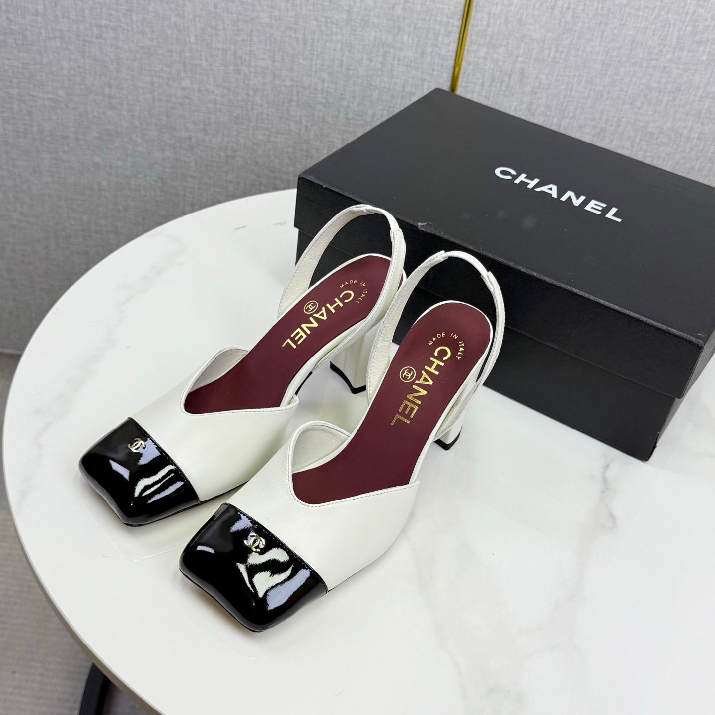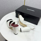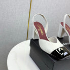 CC 25FW Square Toe Slingback Black White Sheepskin Patent Leather 541132