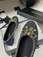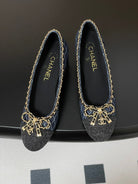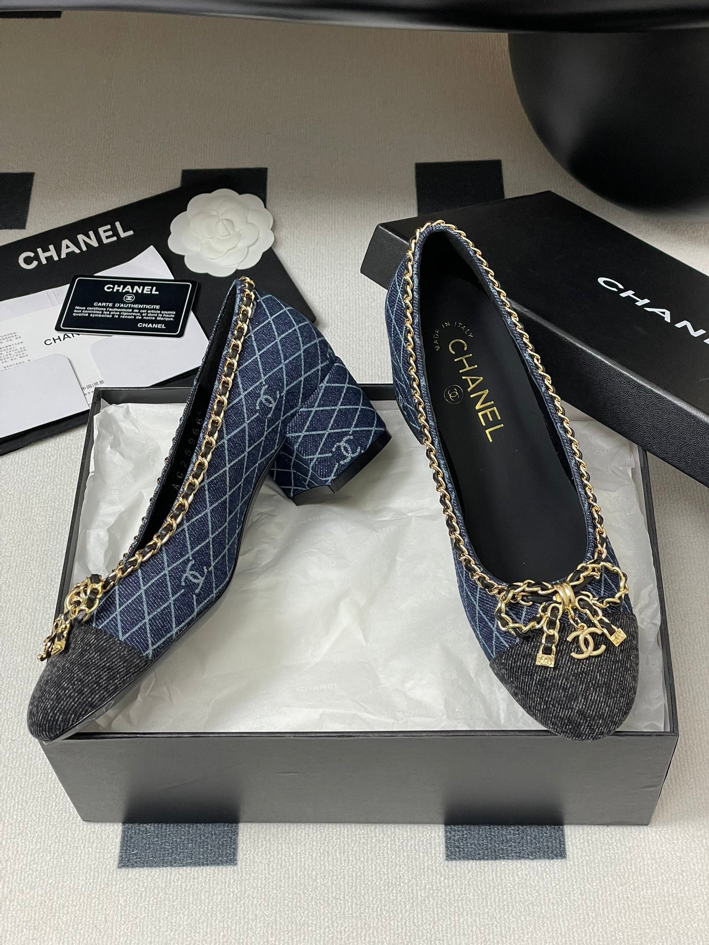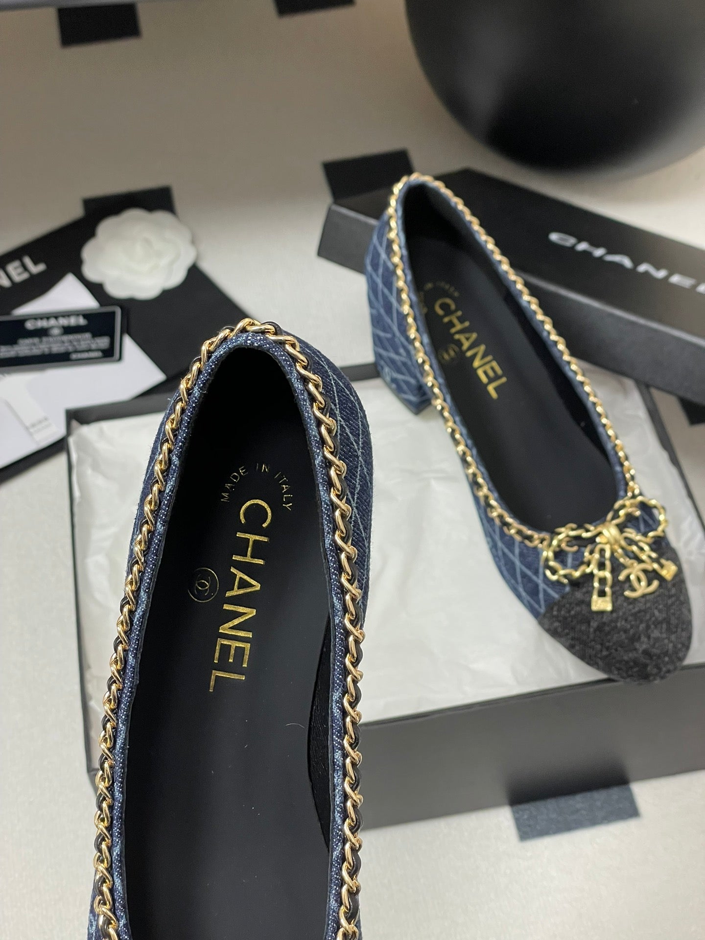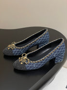 CC 25S 60mm Chain Bow Single Pumps Dark Blue Denim Black Grosgrain 247666