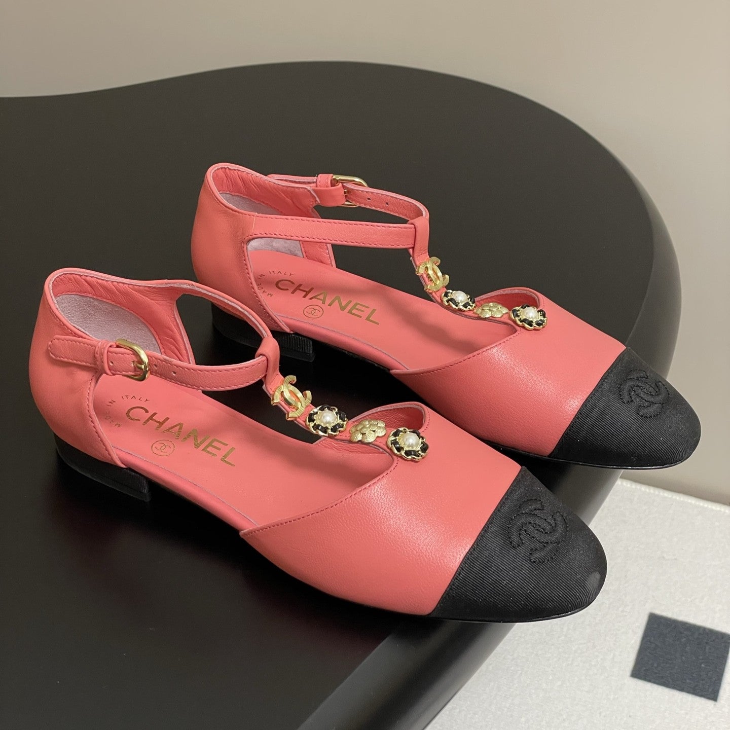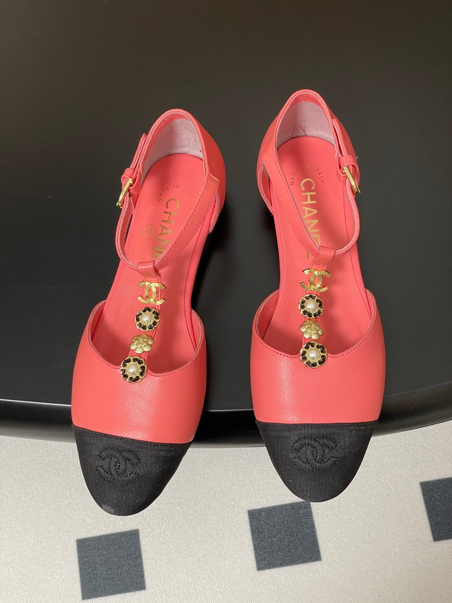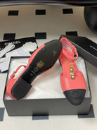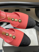 CC 25S Jewelry Double C Buckle T-Strap Mary Jane Hot Pink Lambskin Black Grosgrain 247711