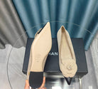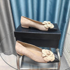 CC BALLET FLAT IN TAN BEIGE SUEDE AND BLACK CALFSKIN WITH FLOWER