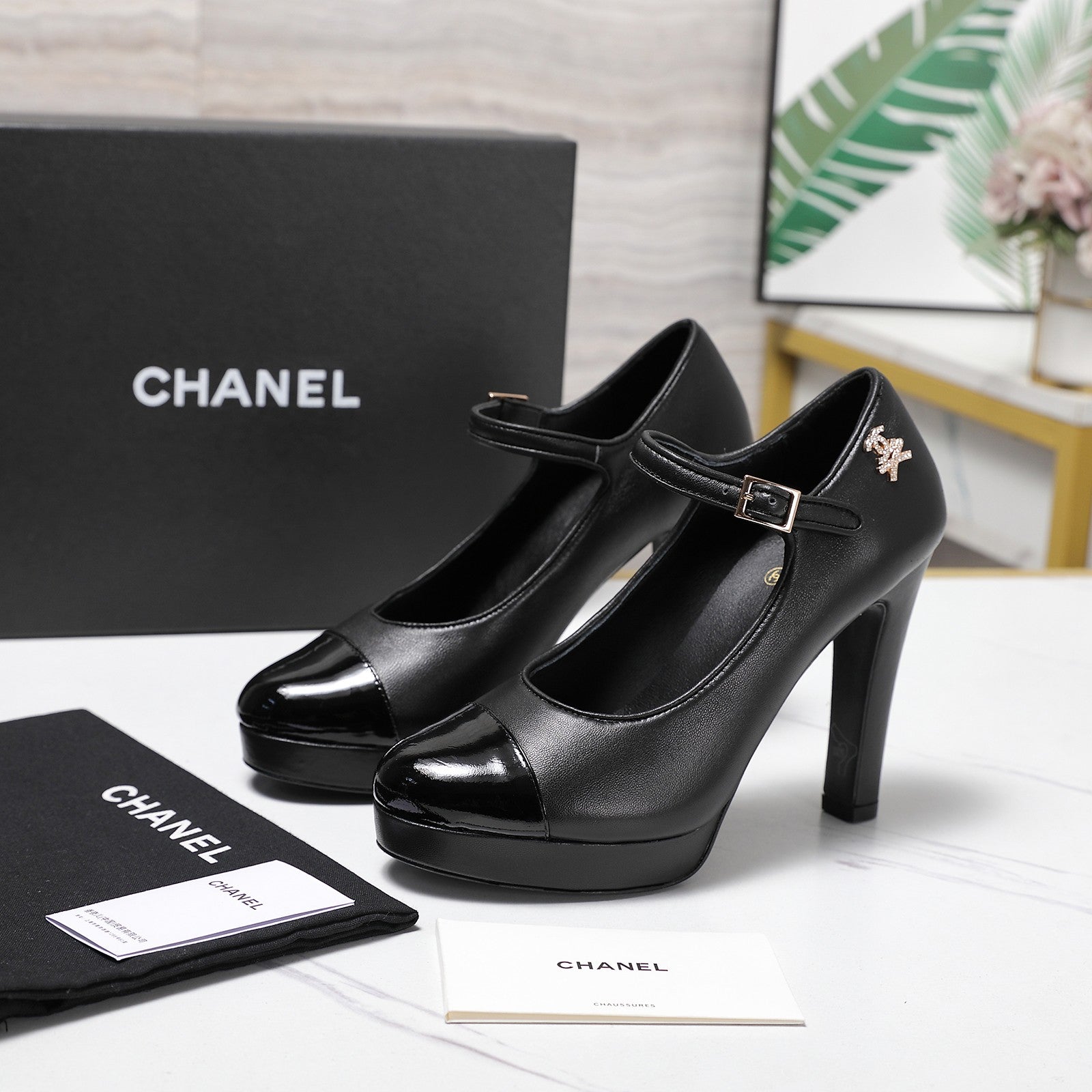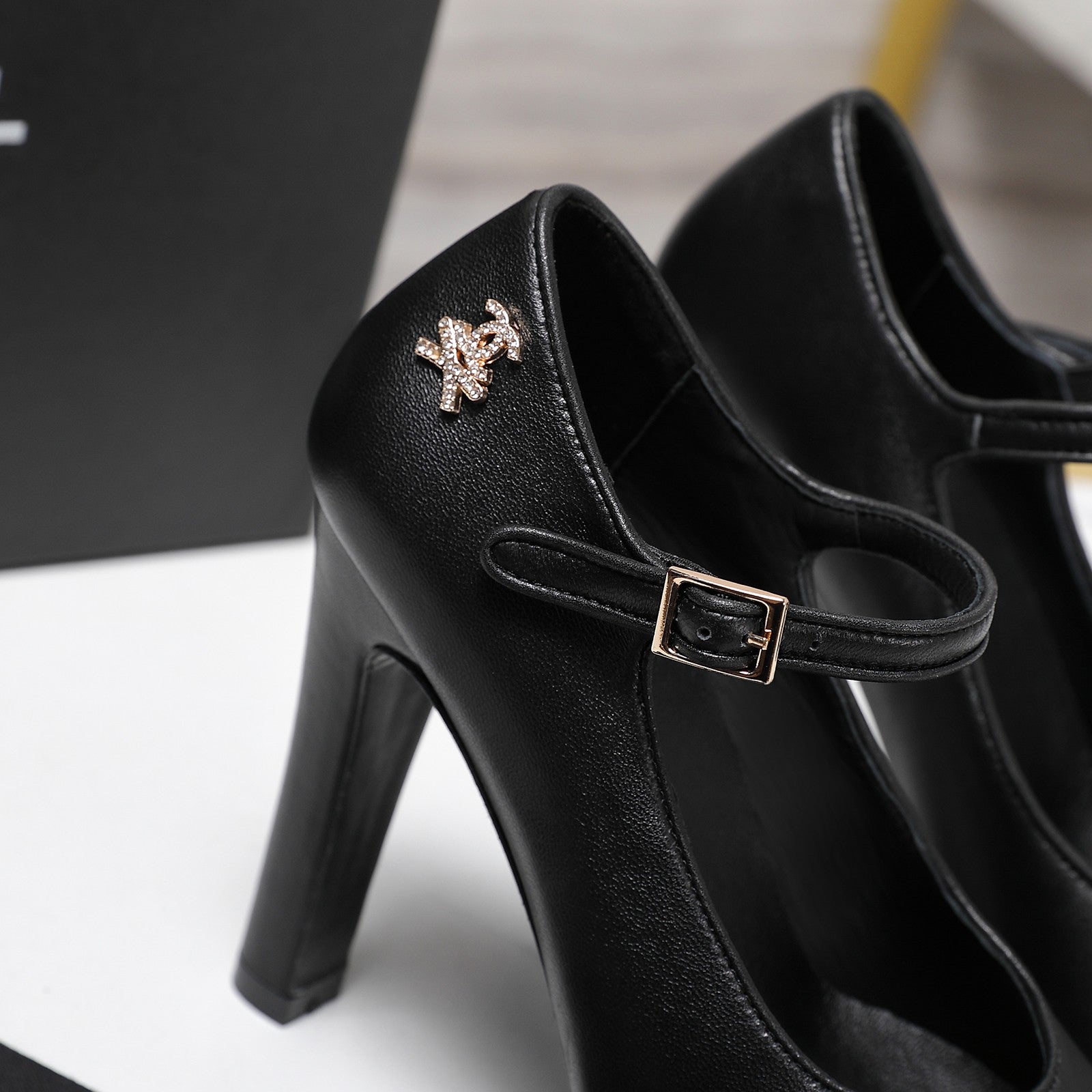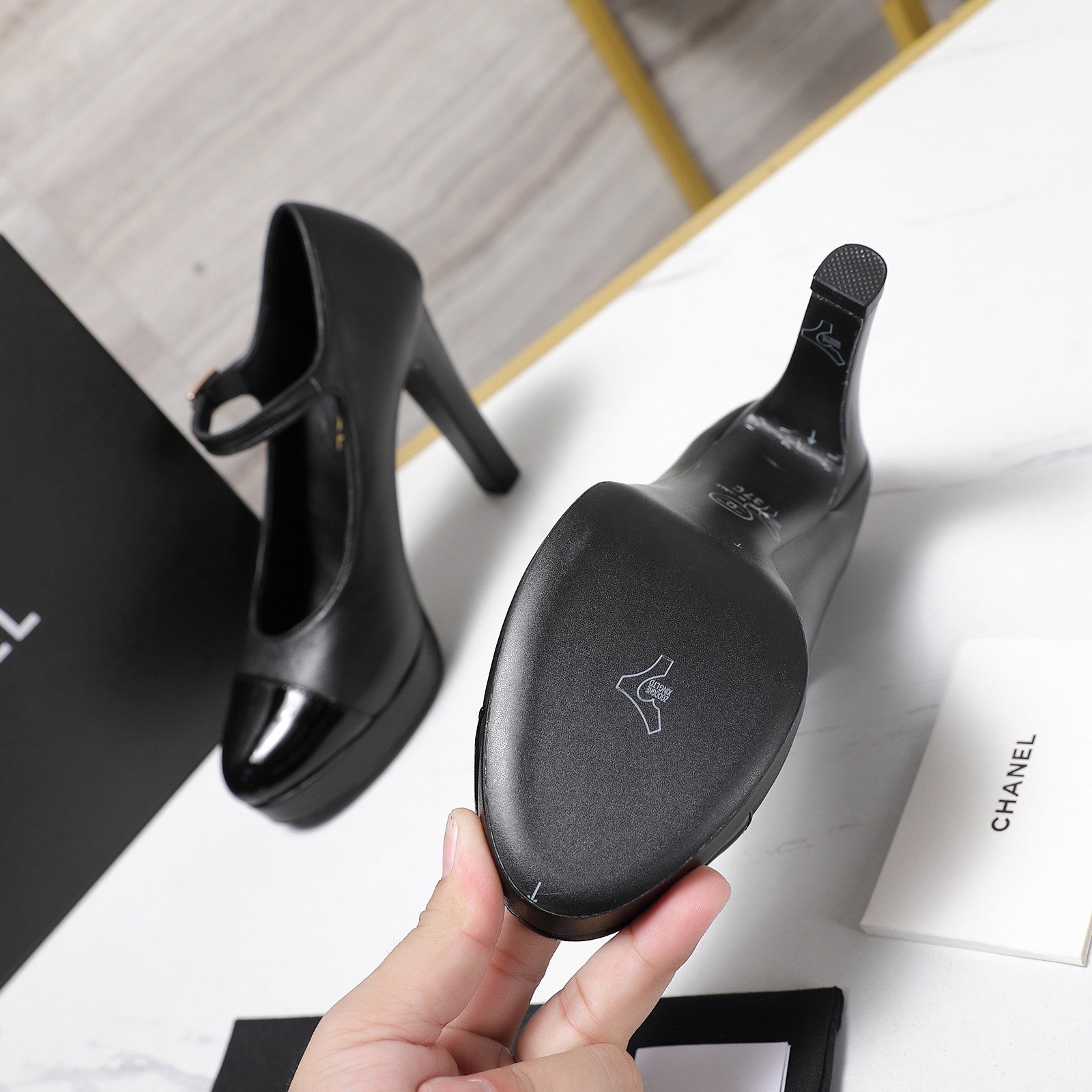 CC Buckle Platform Pumps 100mm Black Lambskin 425881