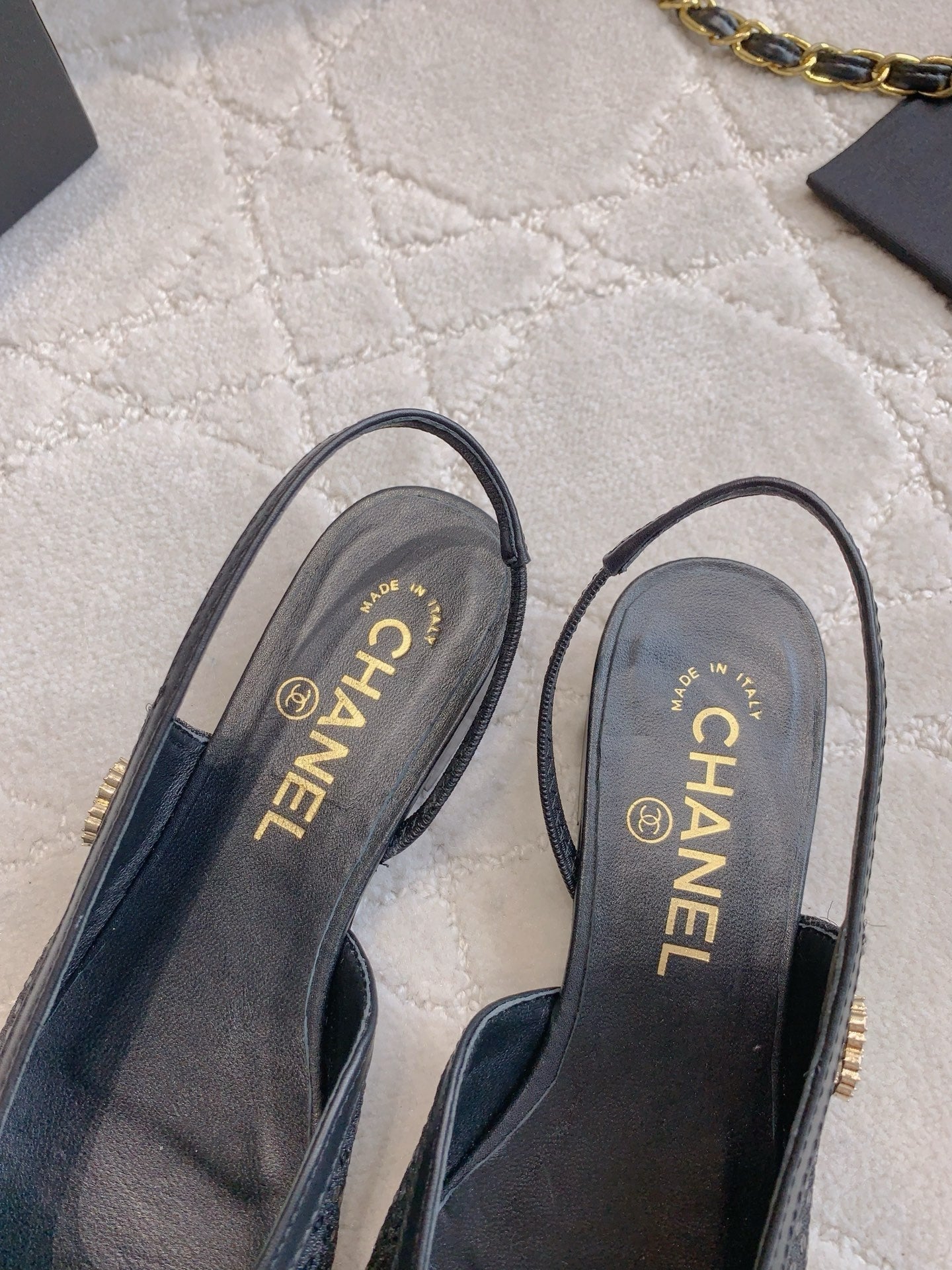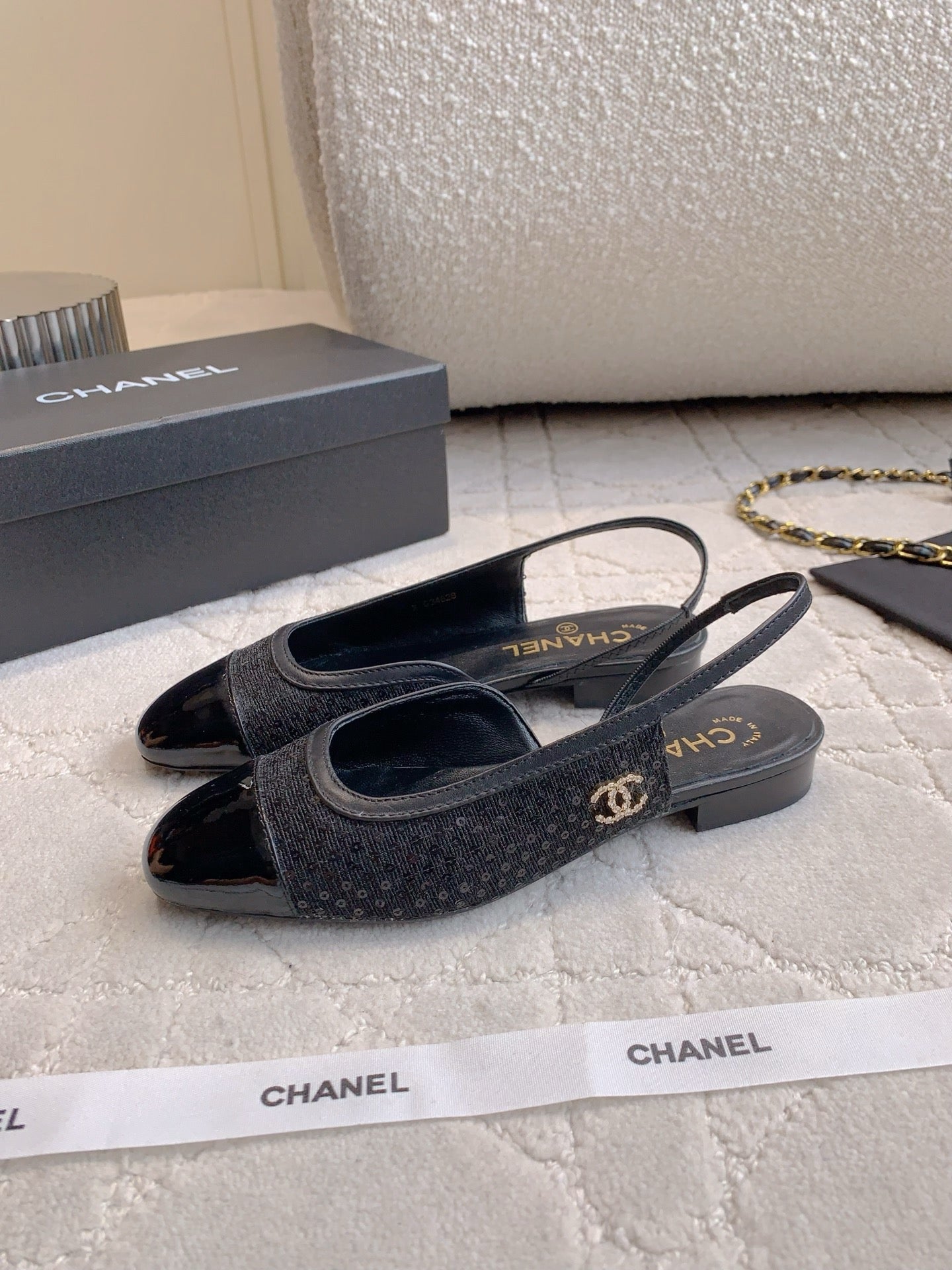 CC Cap Toe Slingback Black Lamskin & Glitter 404279