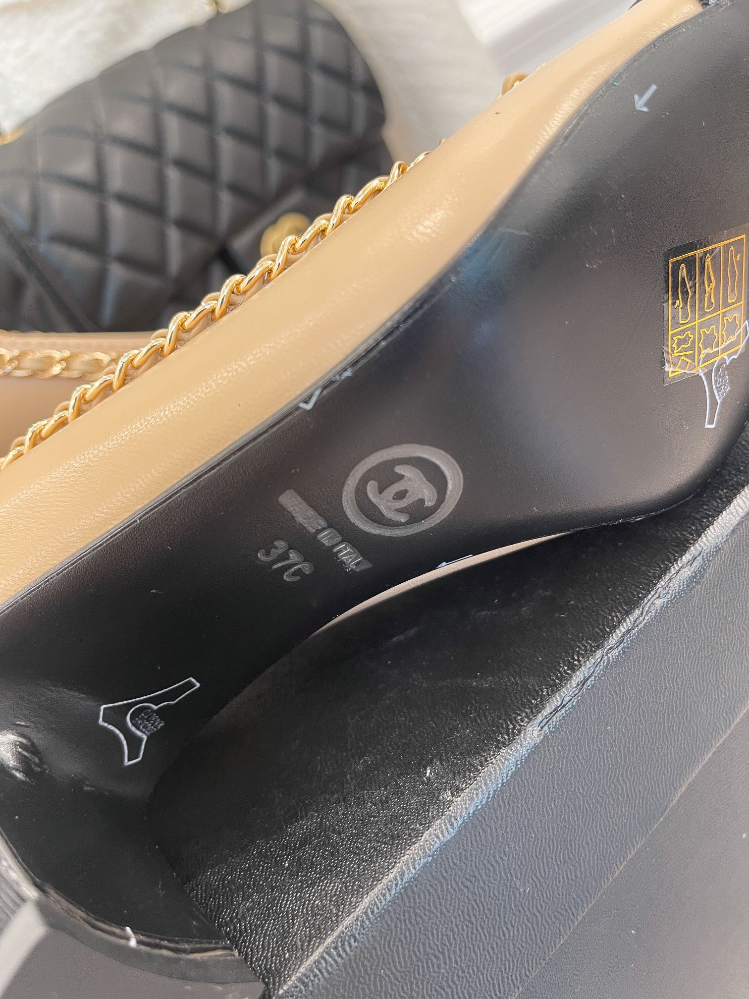 CC High Heels 65mm Beige Bow Tie Chain Lambskin