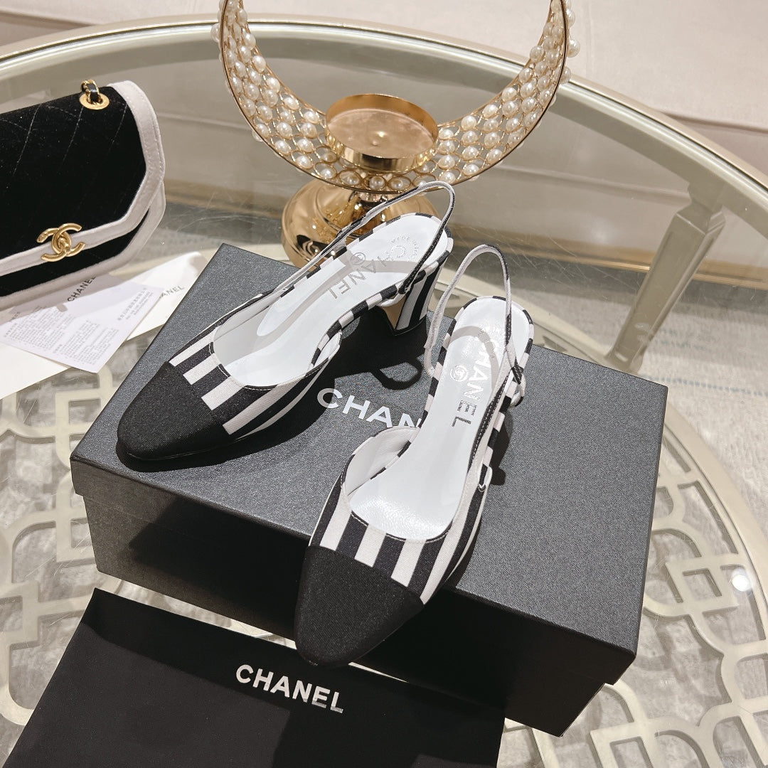 CC HIGH SLINGBACK IN WHITE MIX BLACK FABRIC