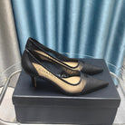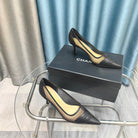 CC Pumps 50 Black Mesh Leather Pointed Toe