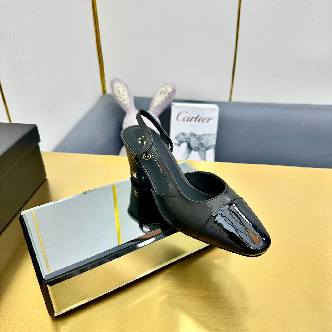 cc slingback pumps 65 in black lambskin and black patent calfskin 137443
