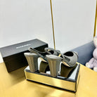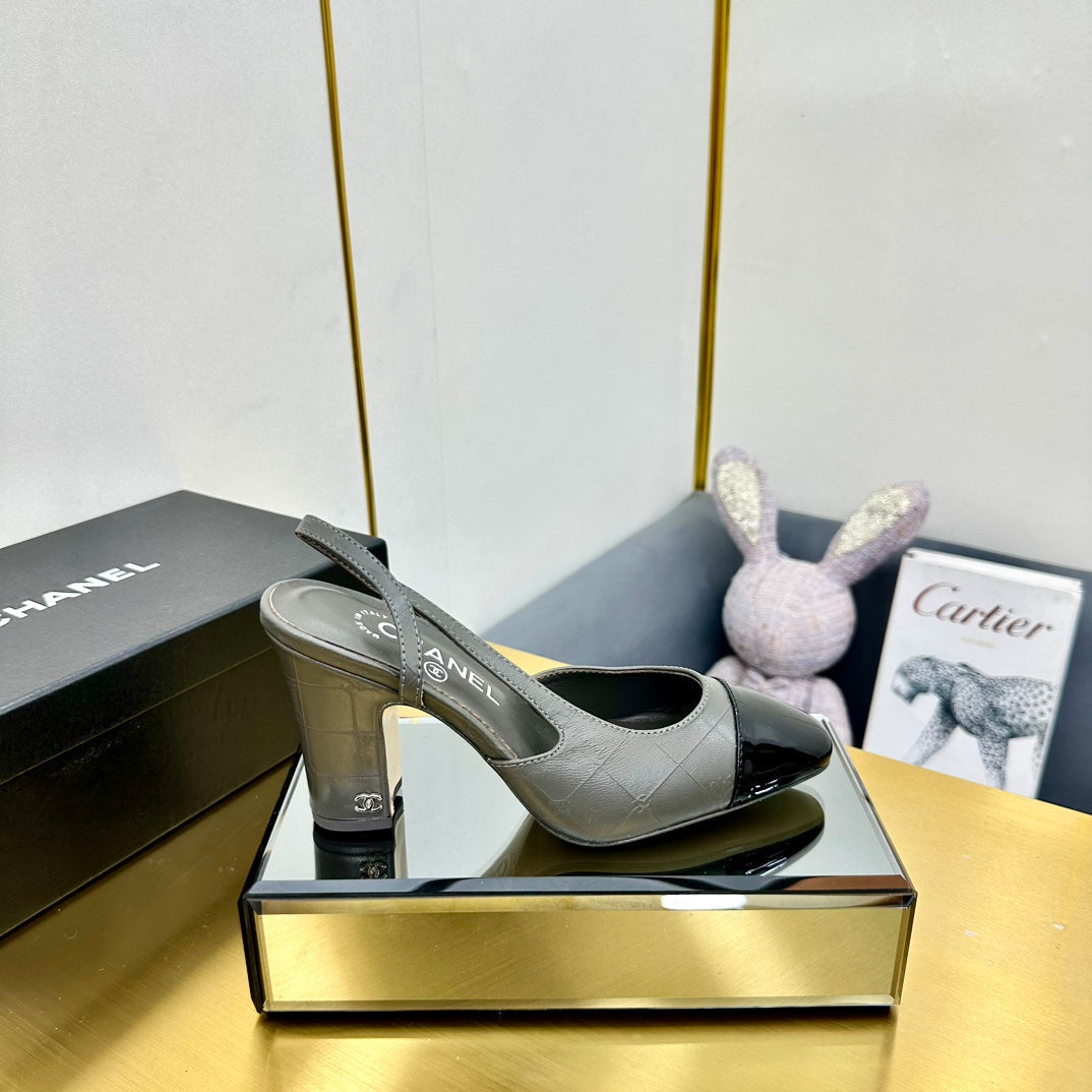 cc slingback pumps 90 in grey lambskin and black patent calfskin 137452