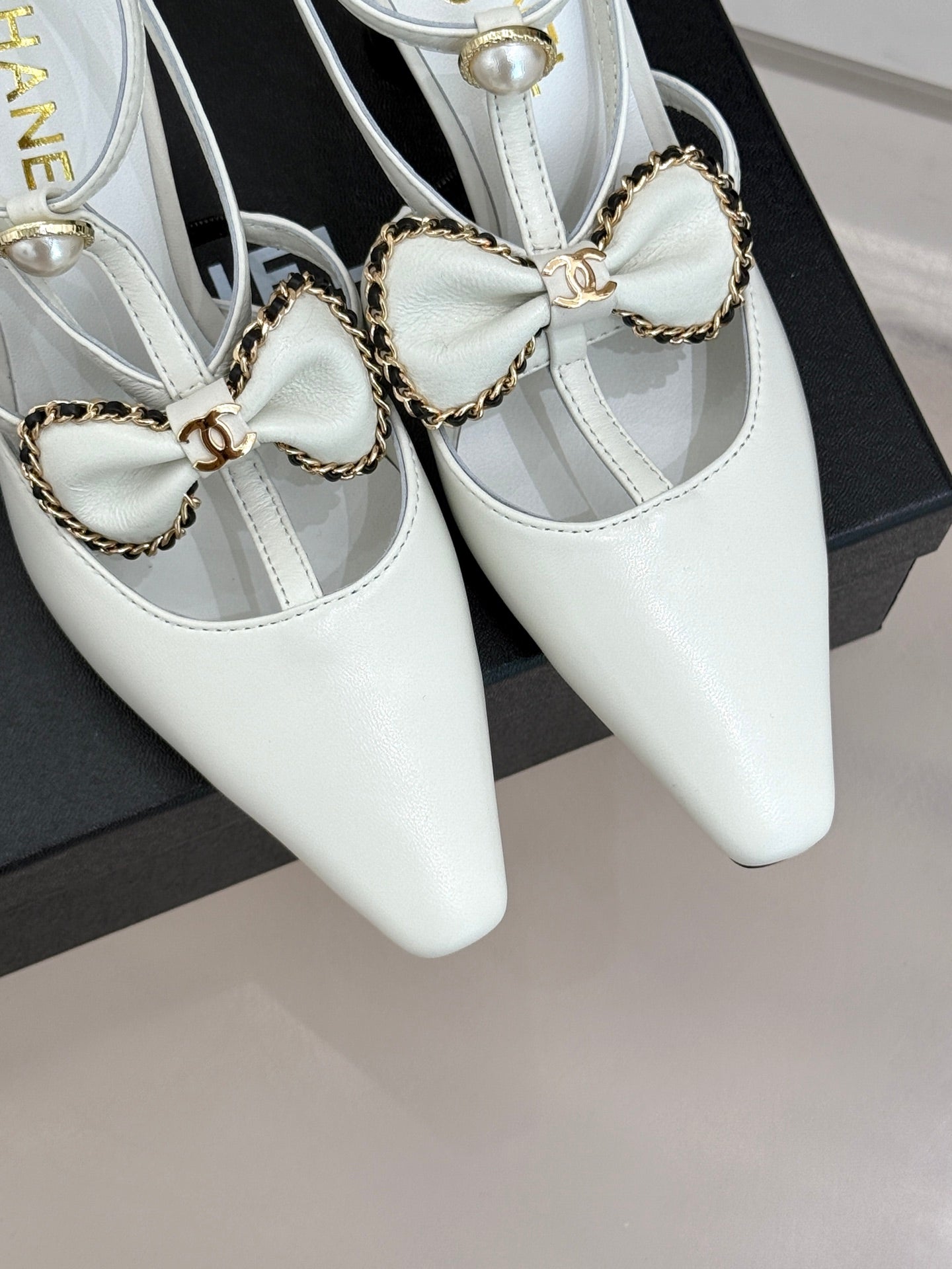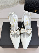 CHAIN BOW HIGH HEEL 8 CM SLINGBACKS IN WHITE SUEDE