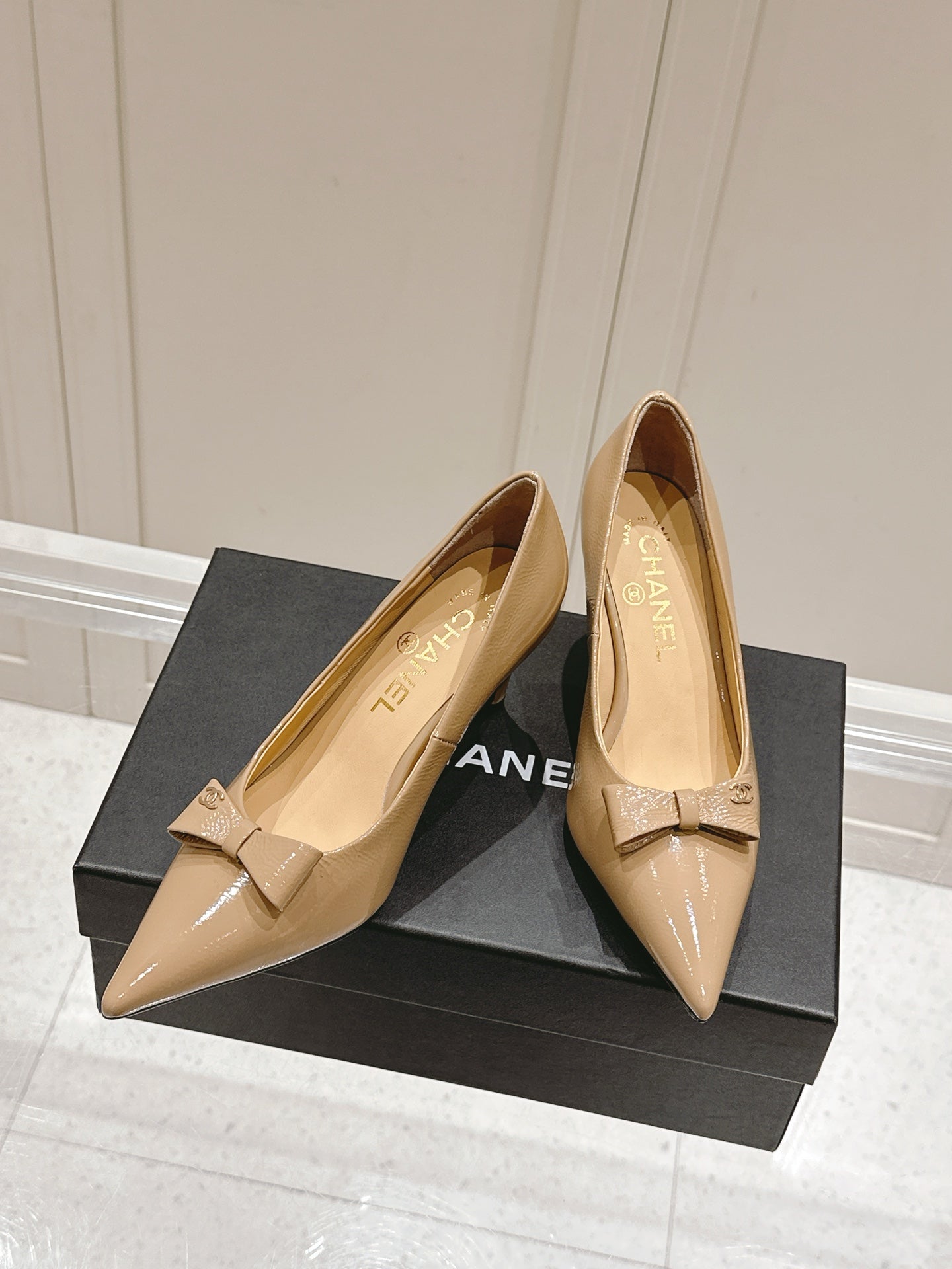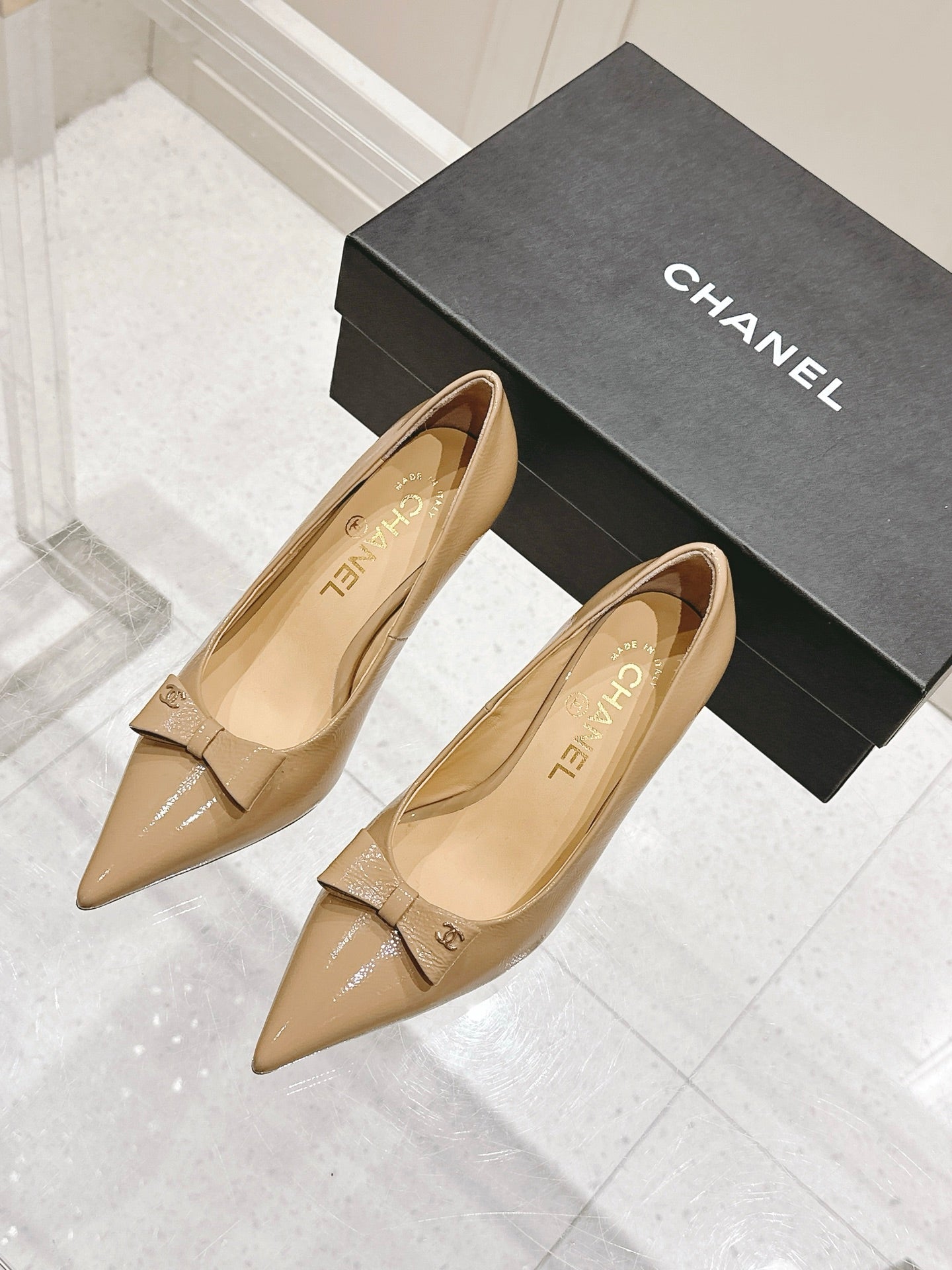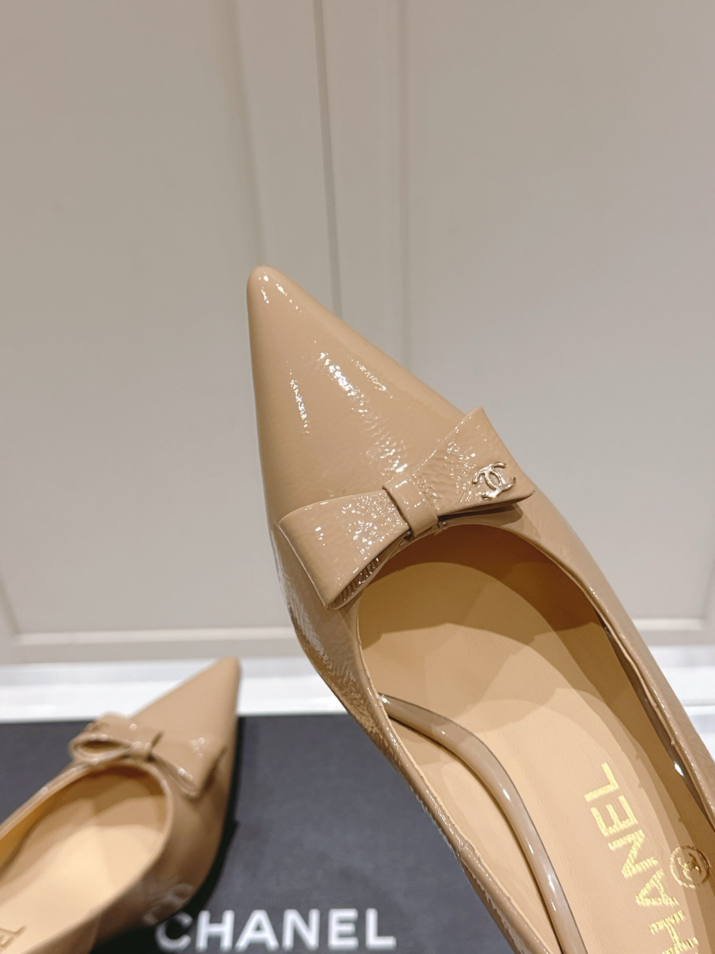 Chanel 25A Heel Pump Nude Patent Calfskin 393070