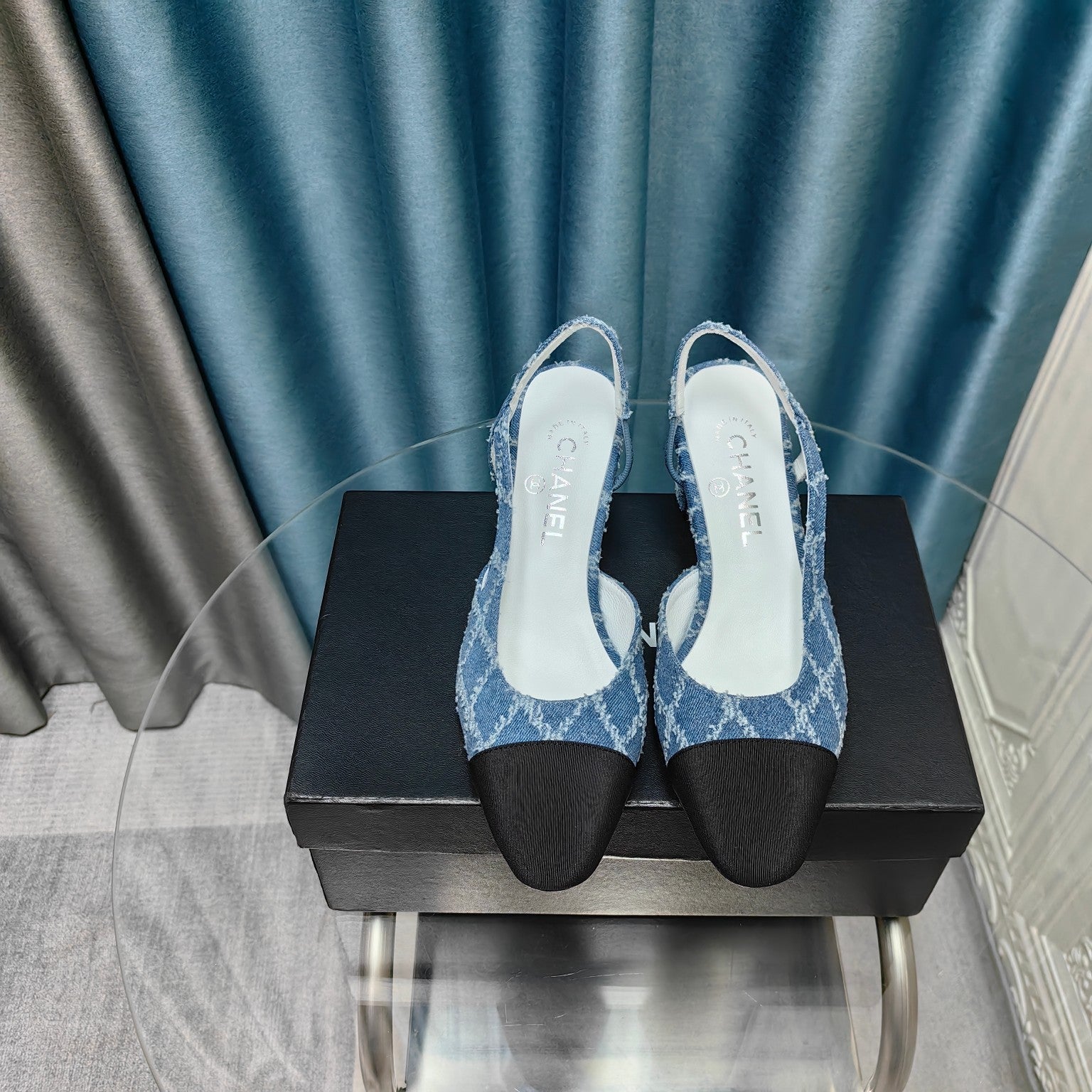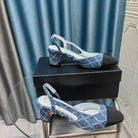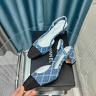 slingbacks 65 blue quilted denim black grosgrain