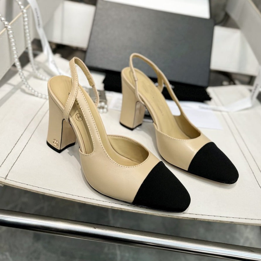 slingbacks pumps 45 beige quilted calfskin black grosgrain