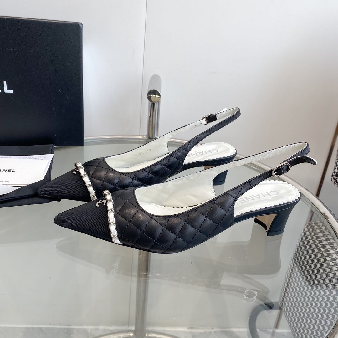 cc slingback pumps 45 black quilted lambskin black grosgrain pointed toe 582849
