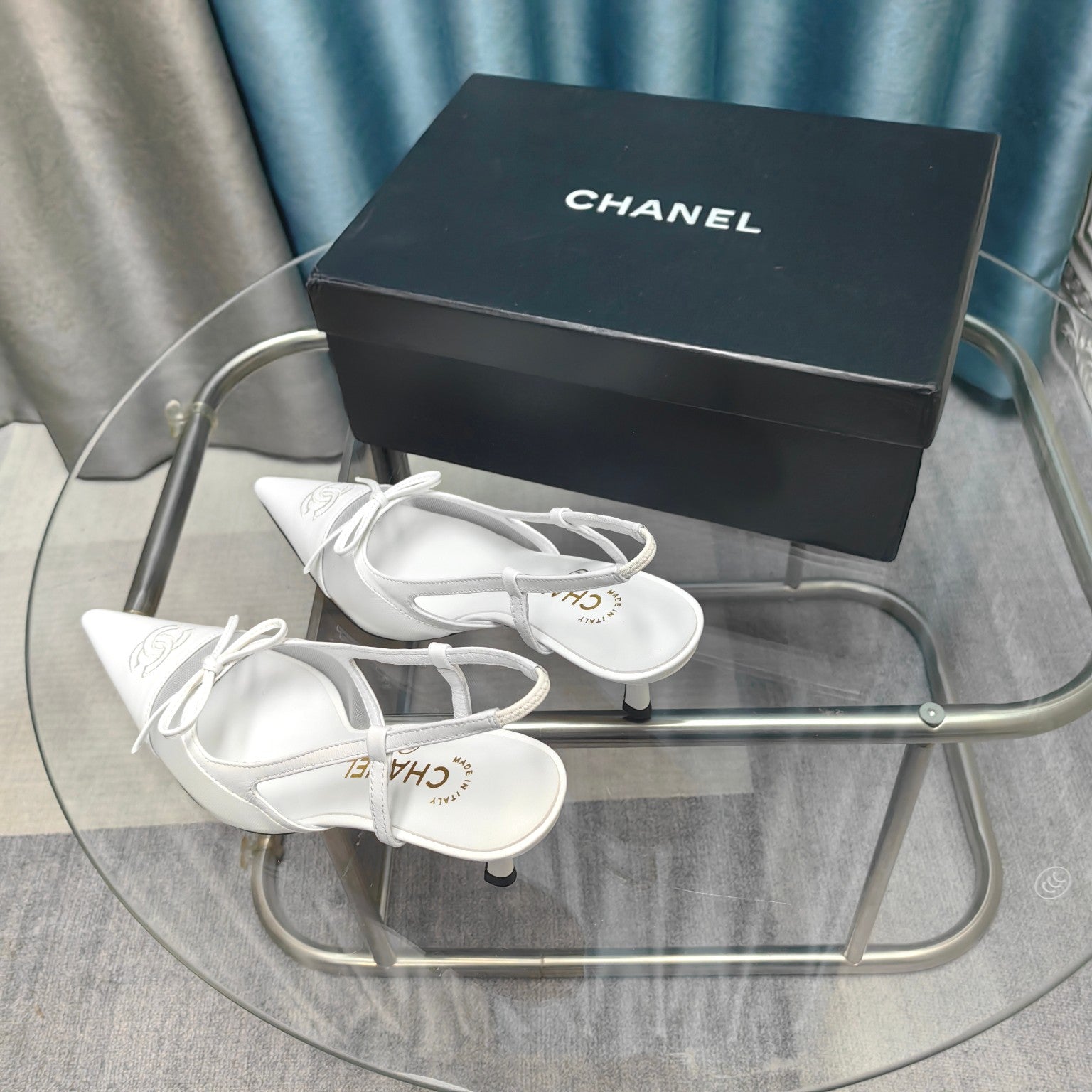 CC High Heels 80mm White Black Bow Quilted Calfskin