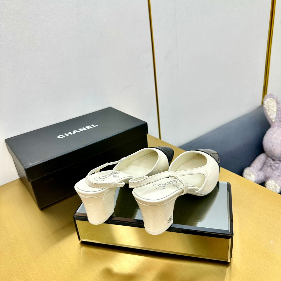 cc slingback pumps 65 in beige lambskin and black patent calfskin