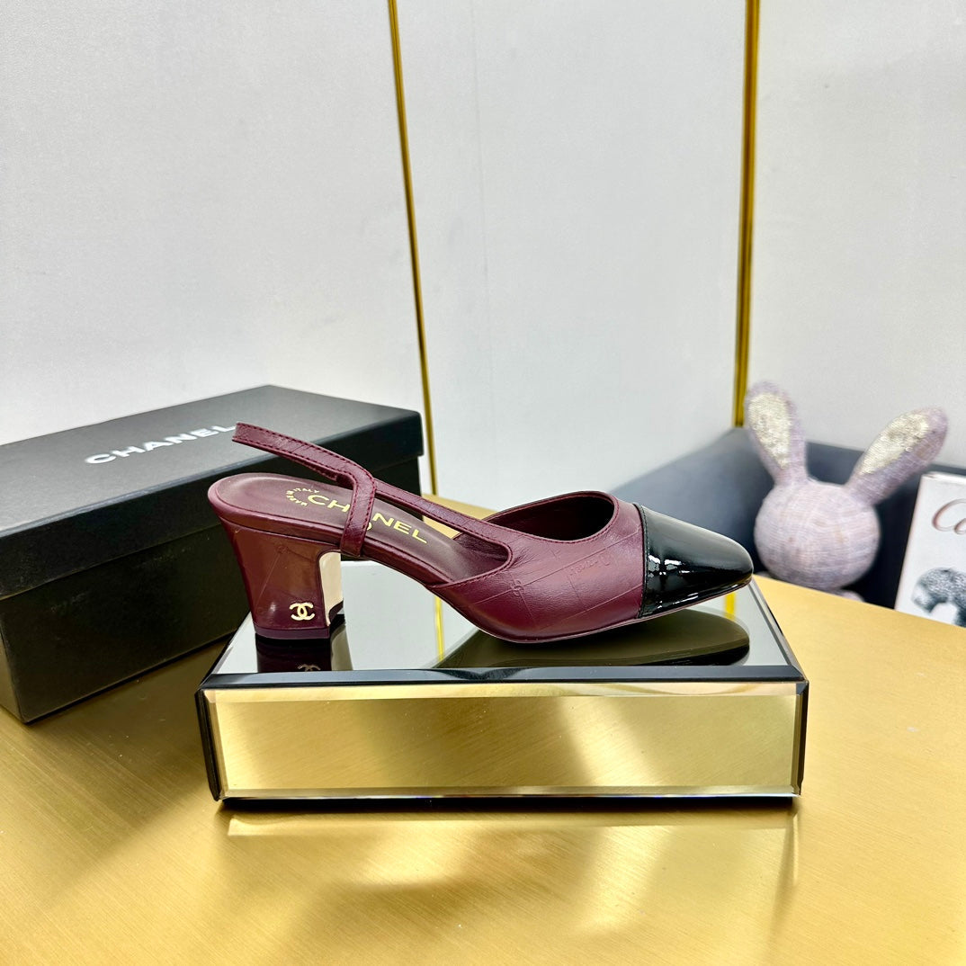cc slingback pumps 65 in burgundy lambskin and black patent calfskin 137439