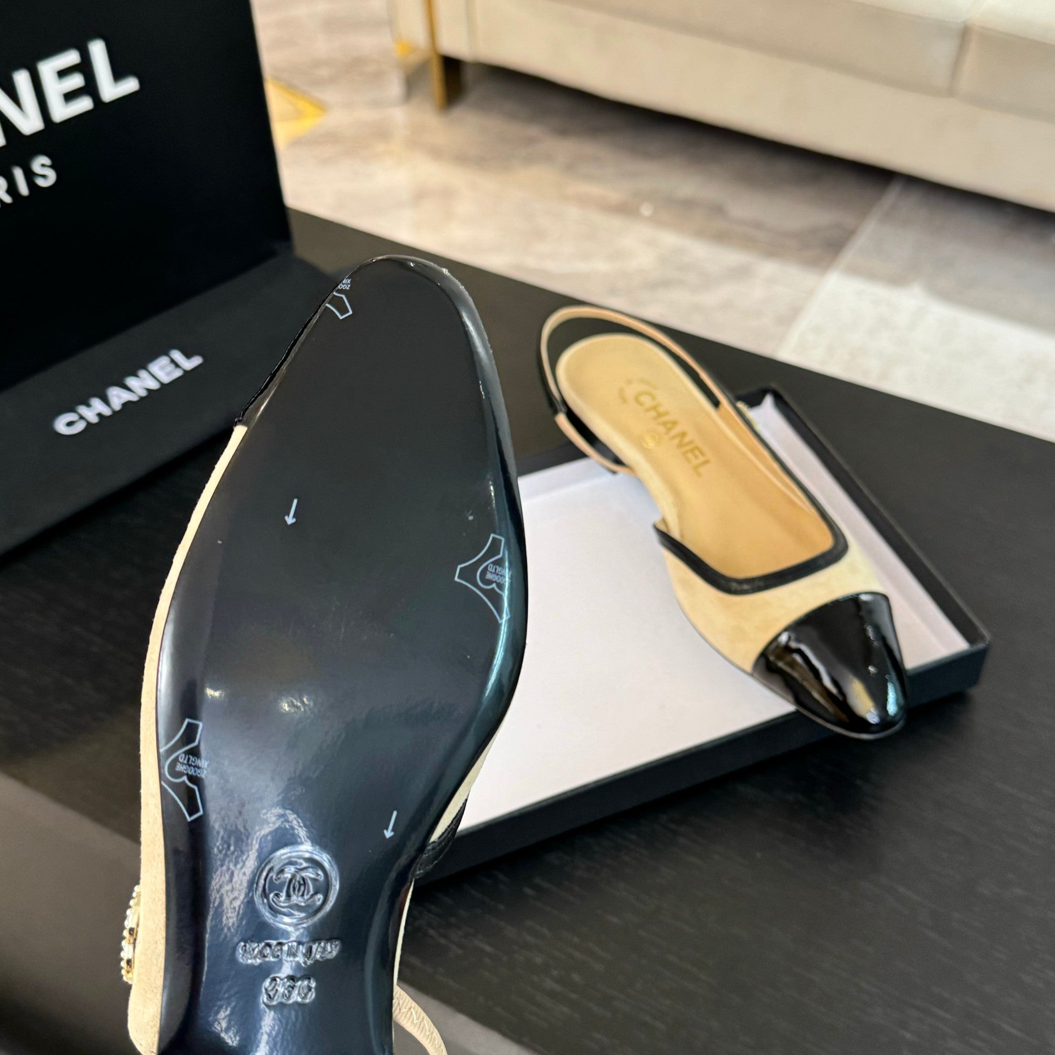 CC Slingback 15mm Beige Lambskin And Denim Fabric