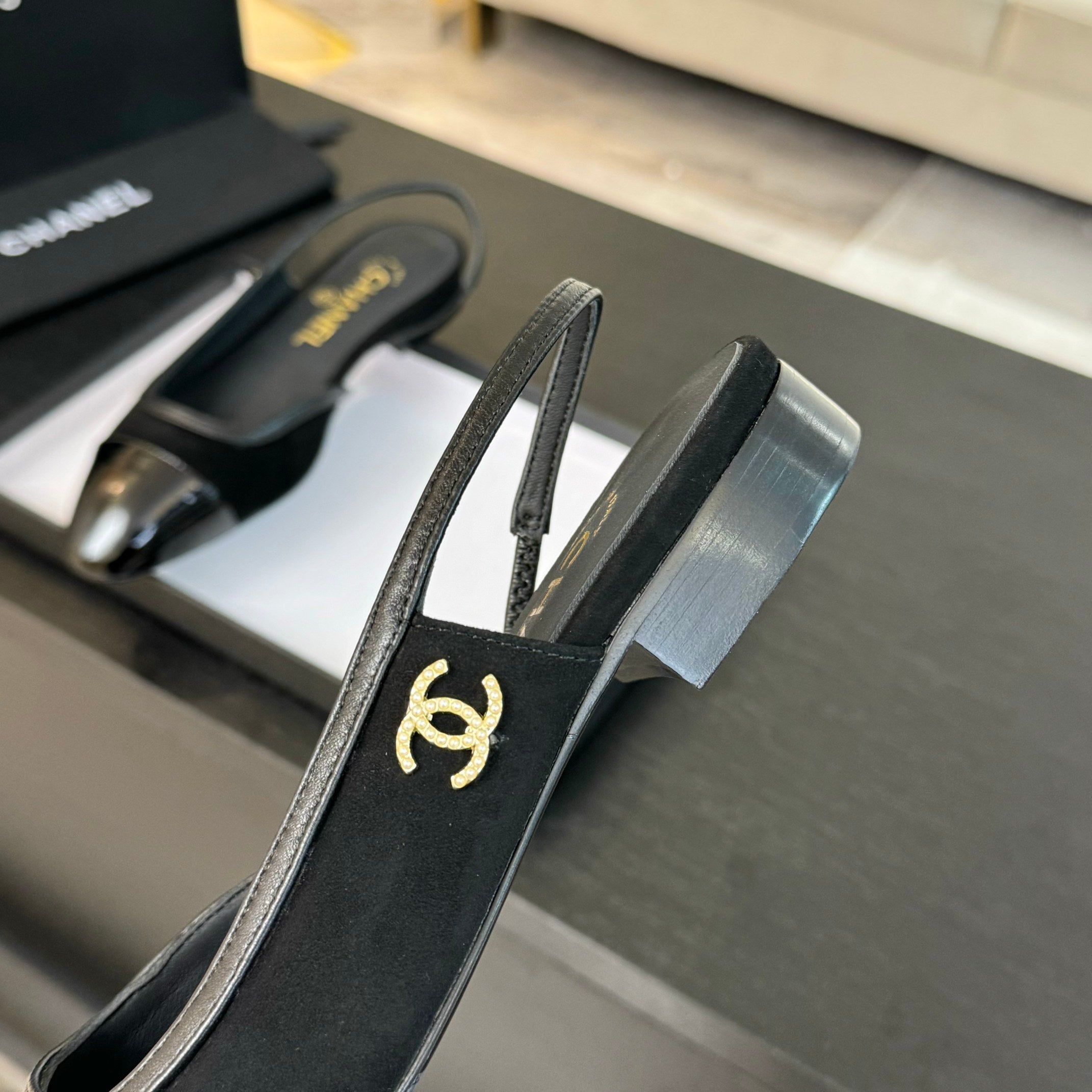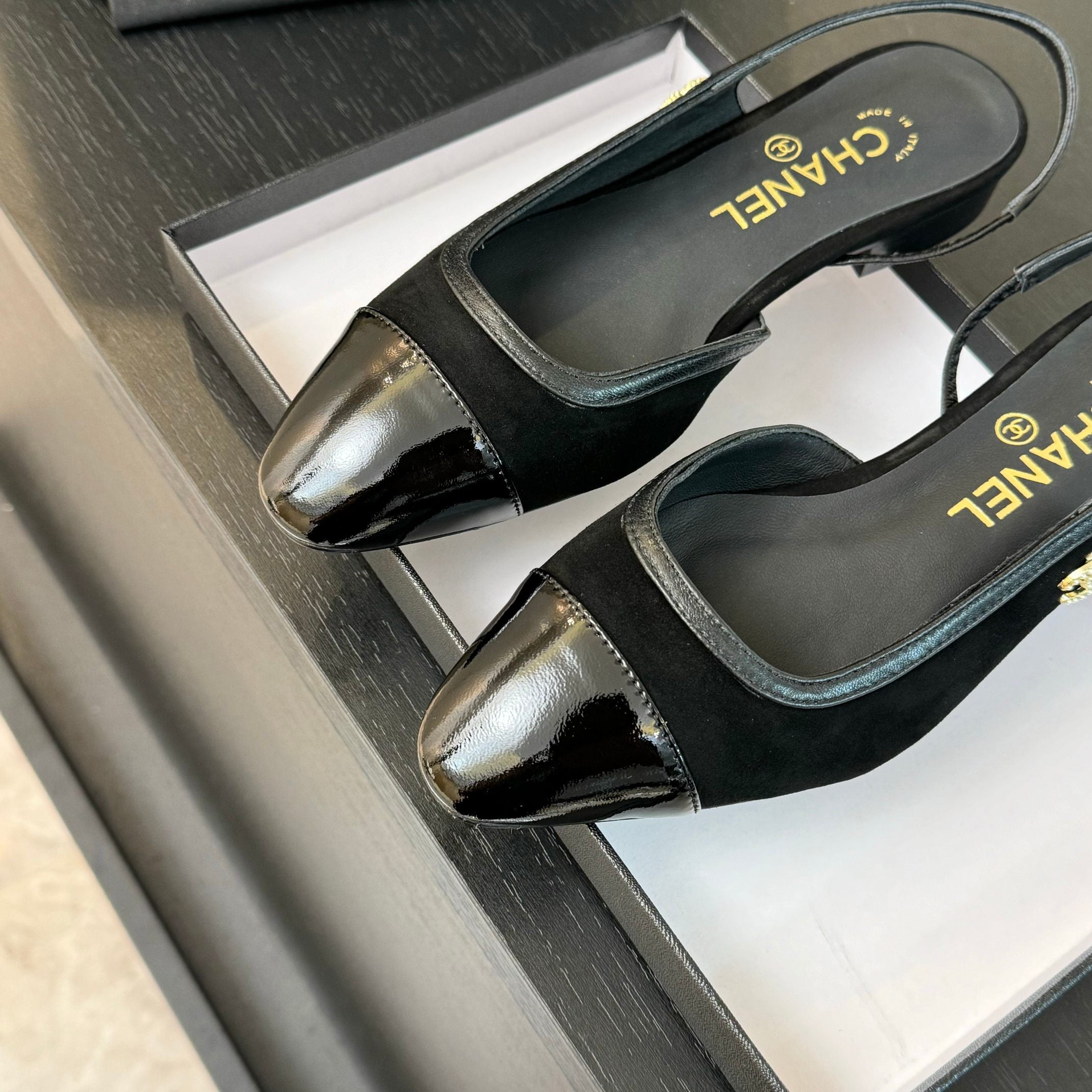 CC Slingback 15mm Black Lambskin And Denim Fabric