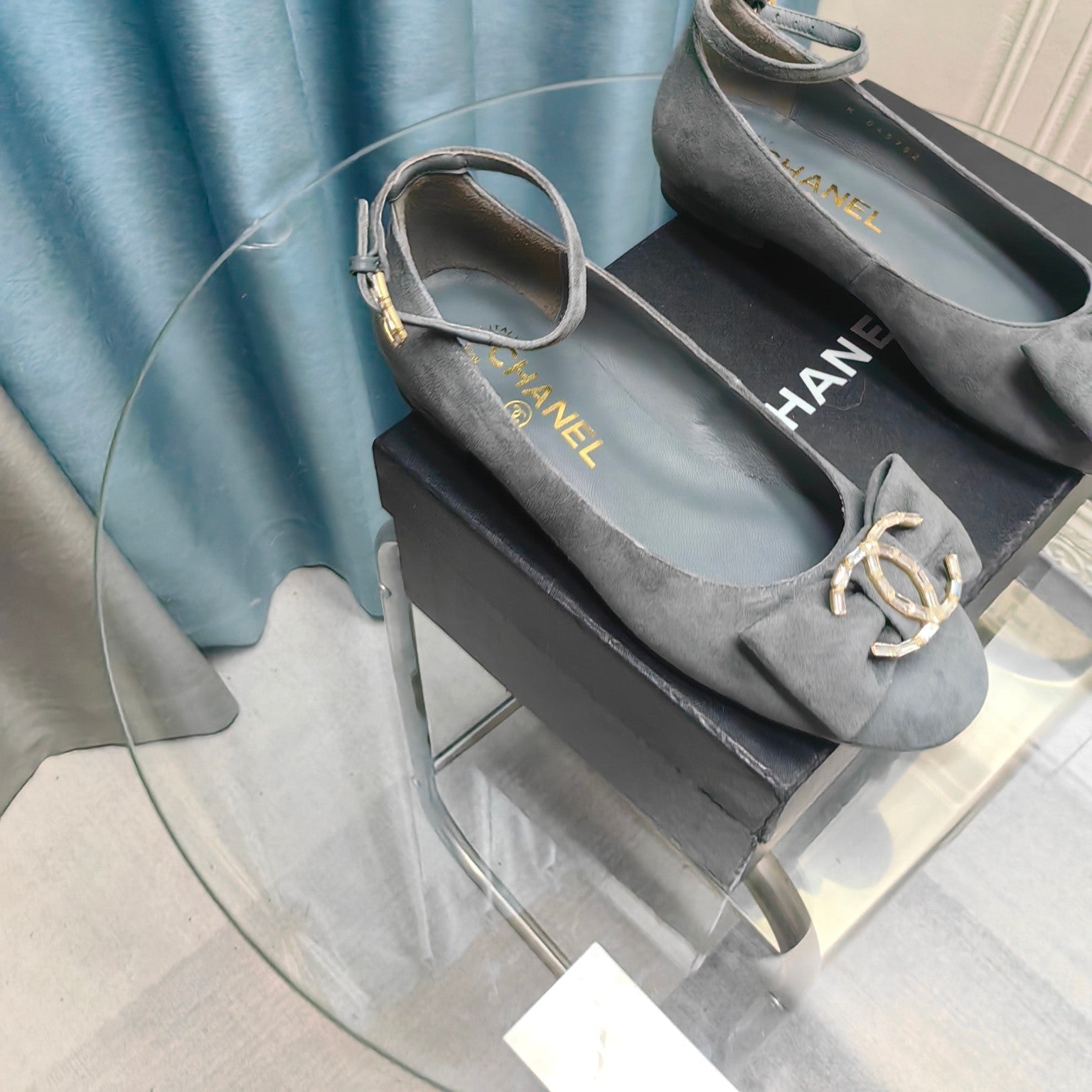 CC Mary Jane Grey Bow Tie Velvet And Lambskin