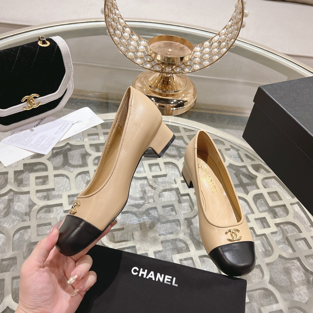 CC High Heels Beige Black Lambskin