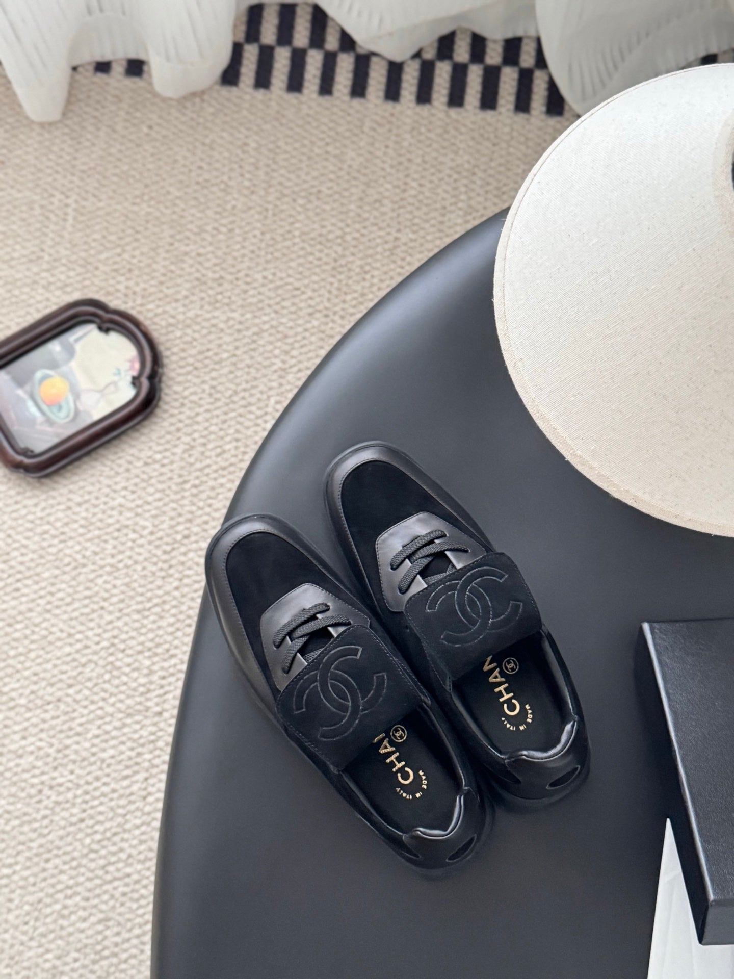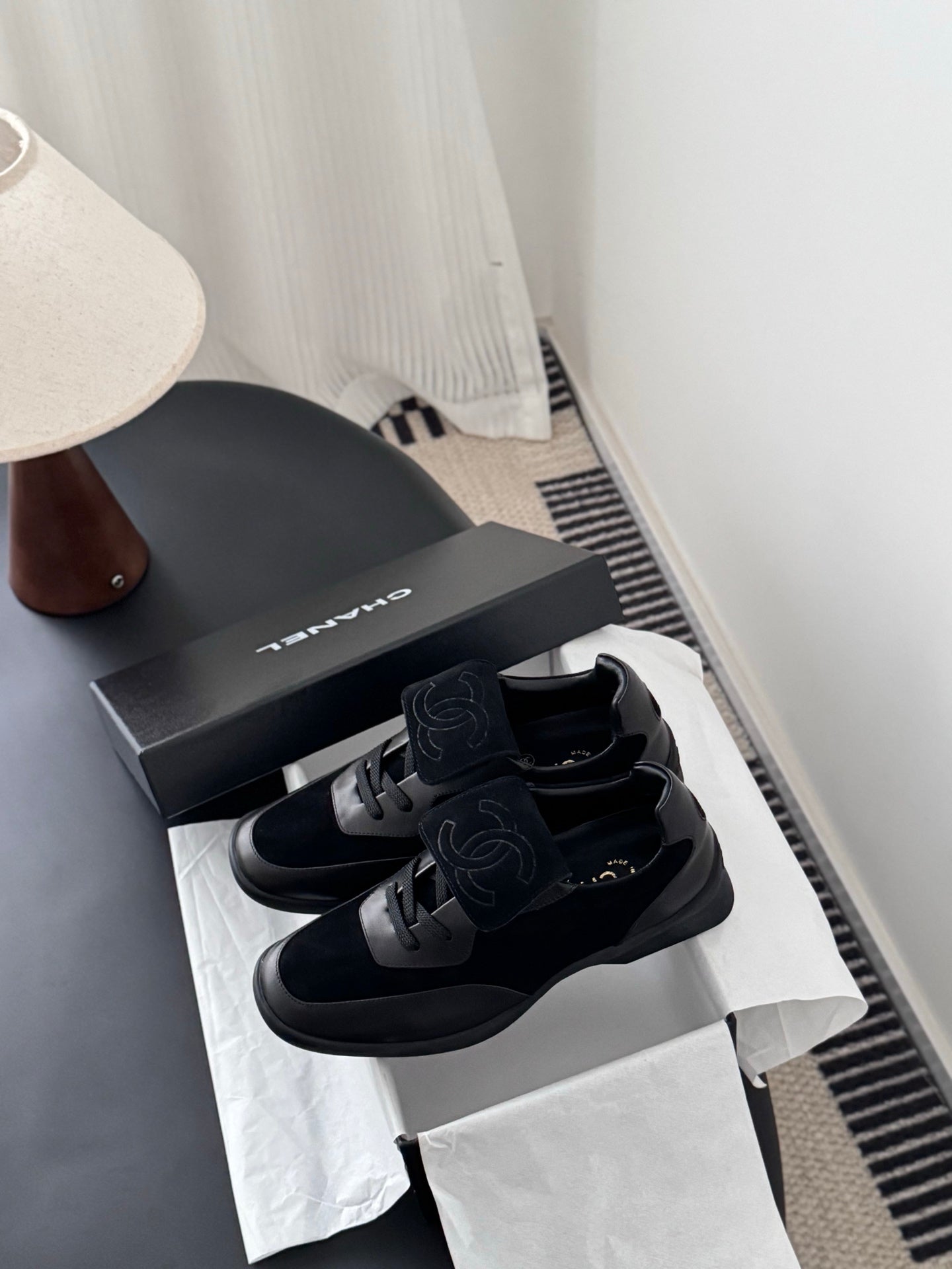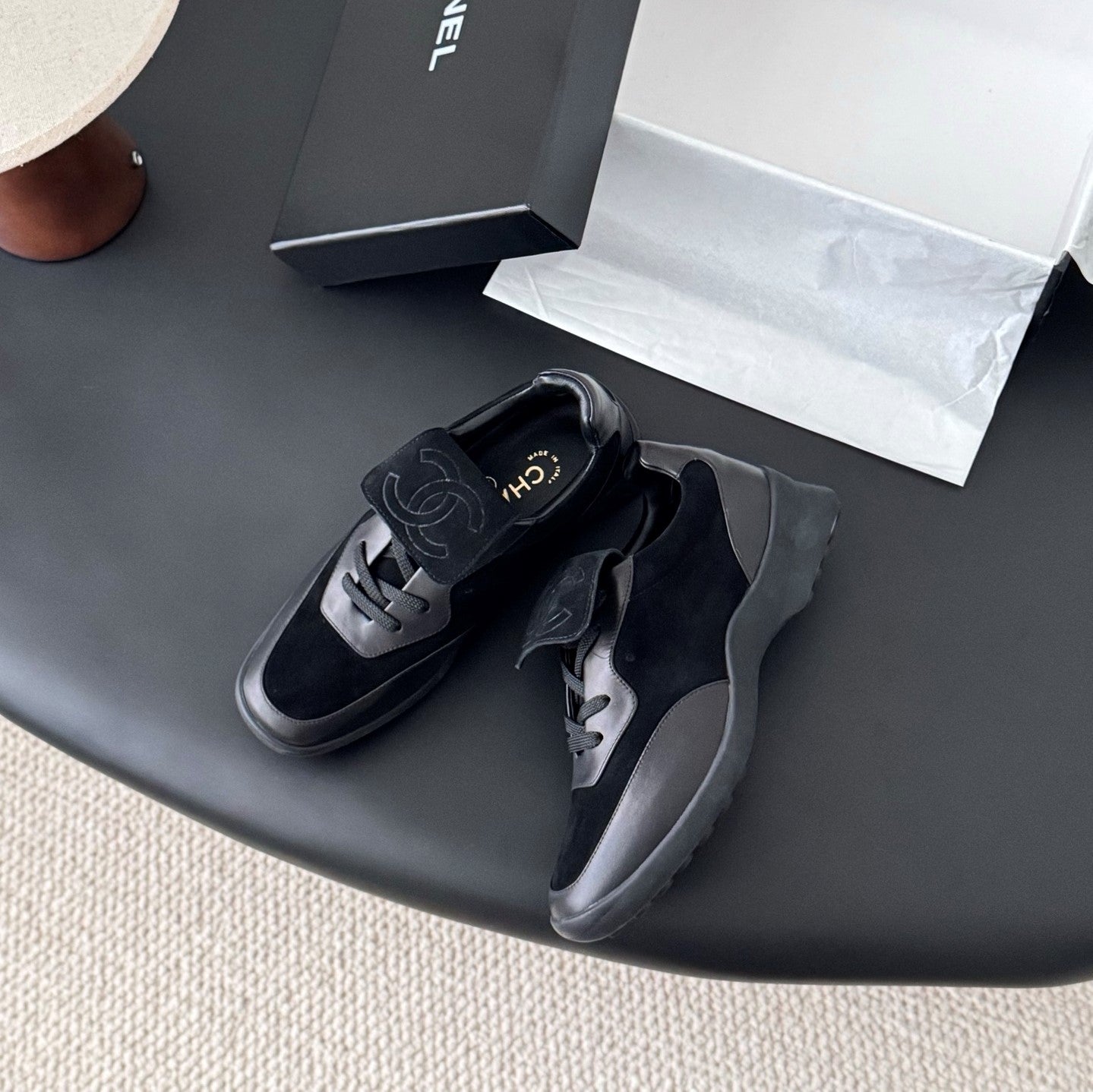 CC 25C New Sporty Casual Shoes Black Suede Sheepskin 540859