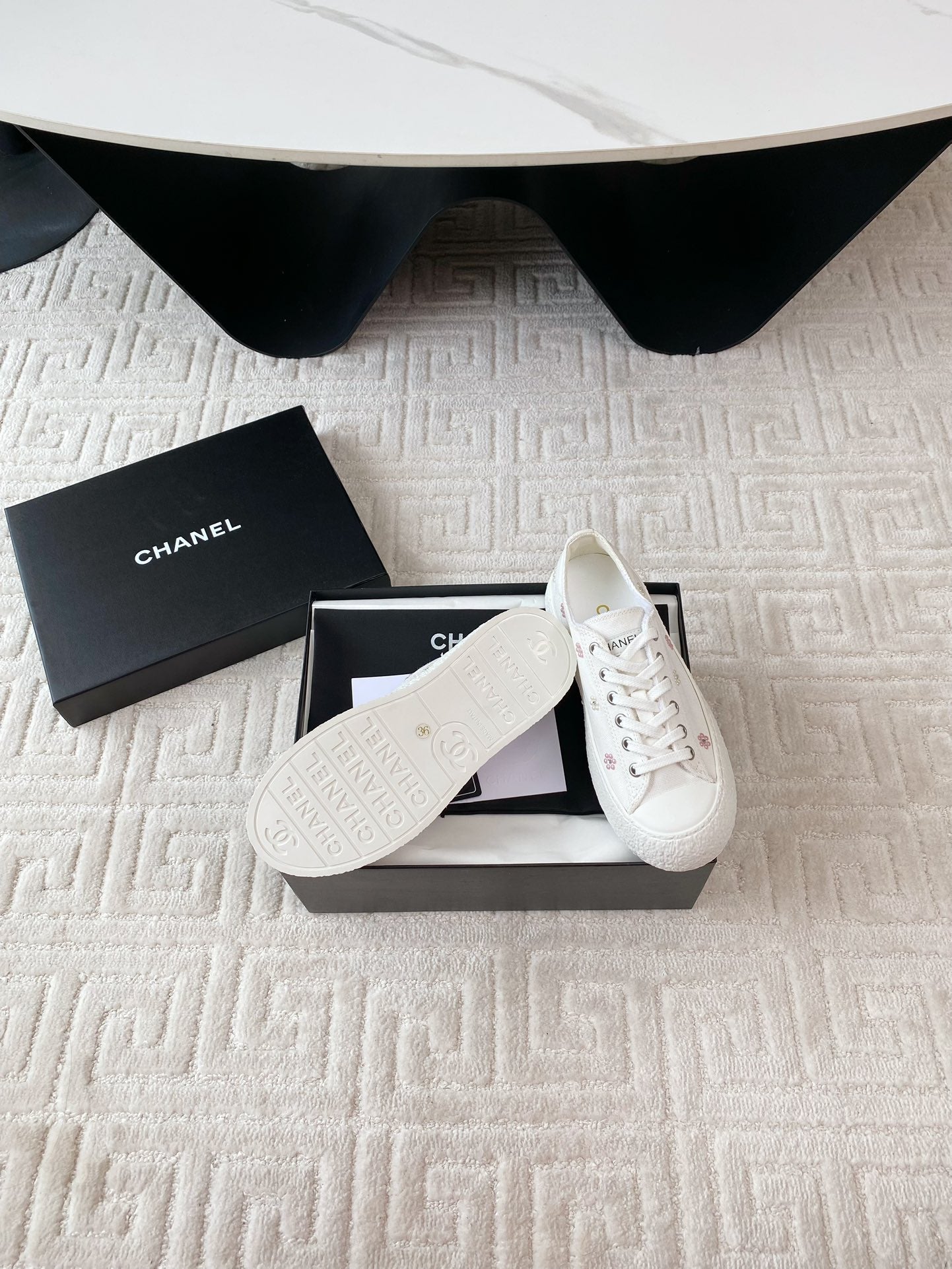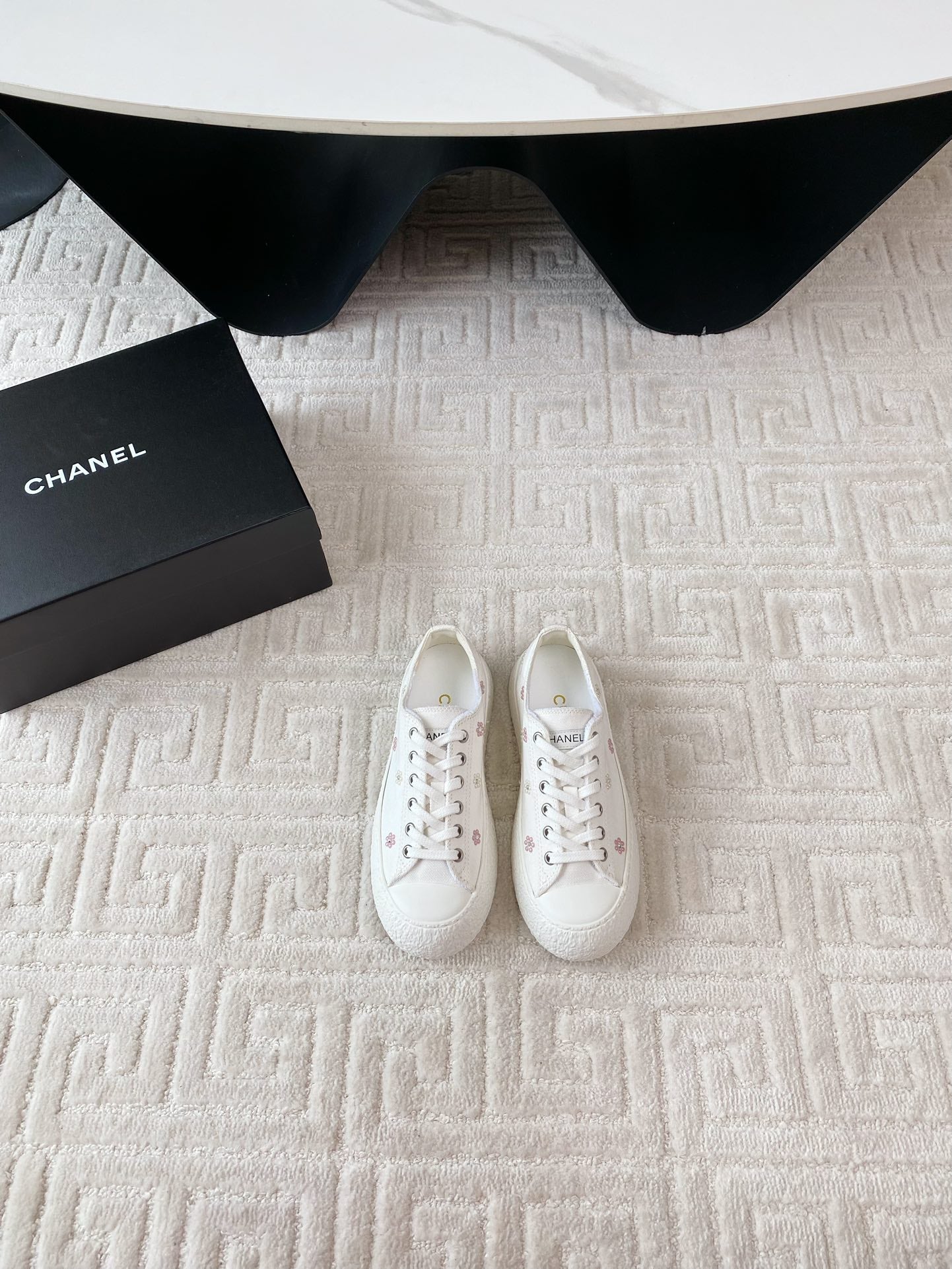 CC Low Sneaker 35mm White Textile Fabric And Lambskin