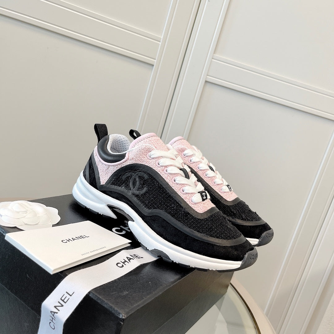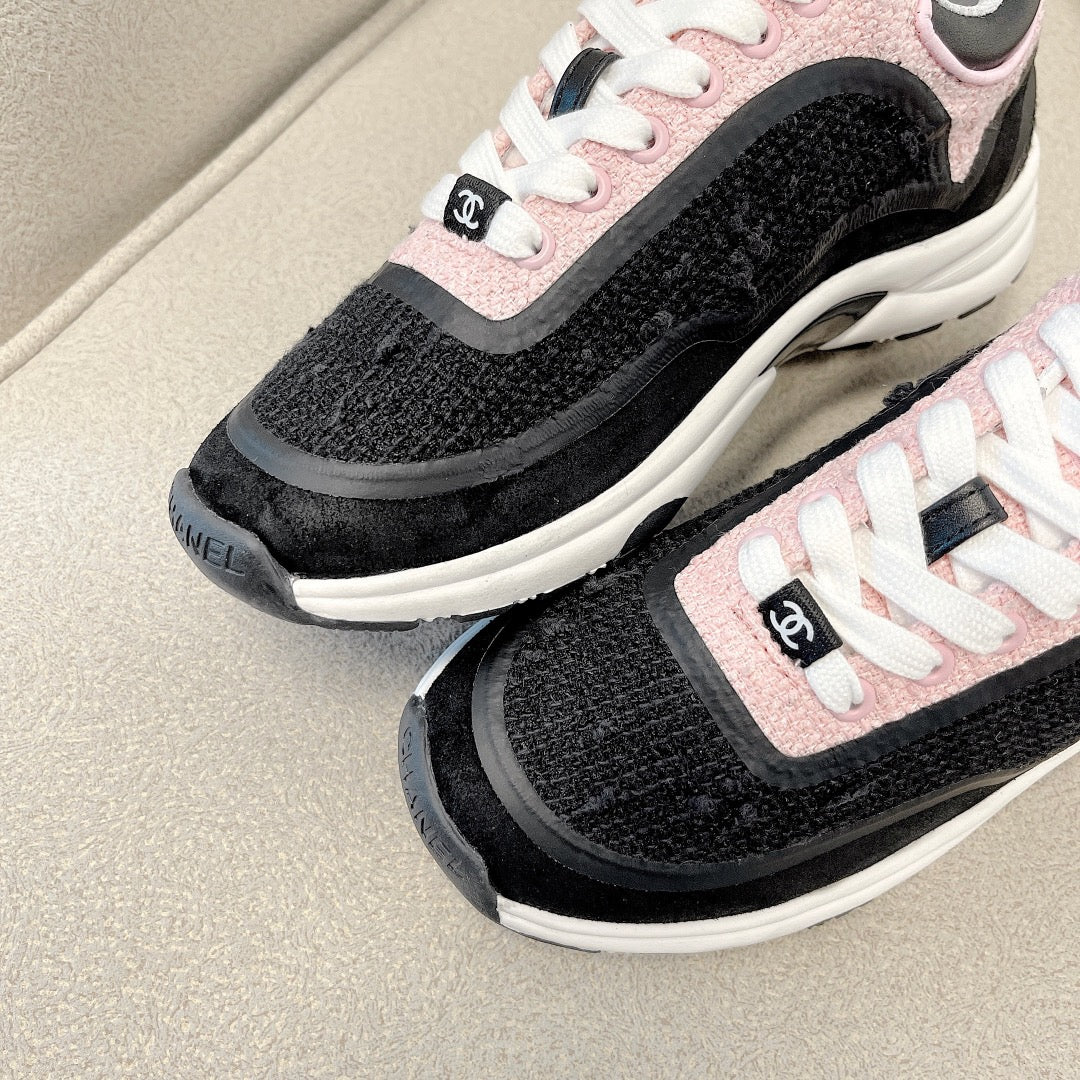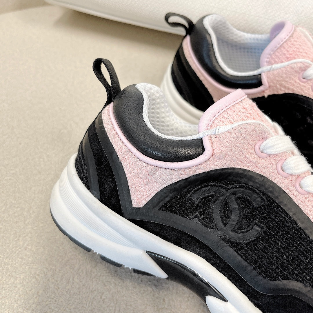 CC Low Top Sneakers Black & Pink Tweed Suede 527566