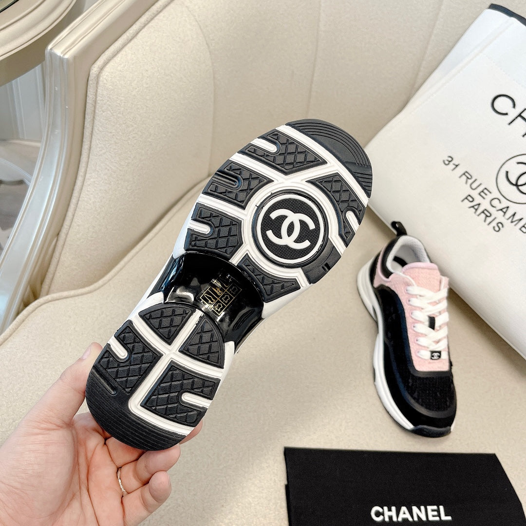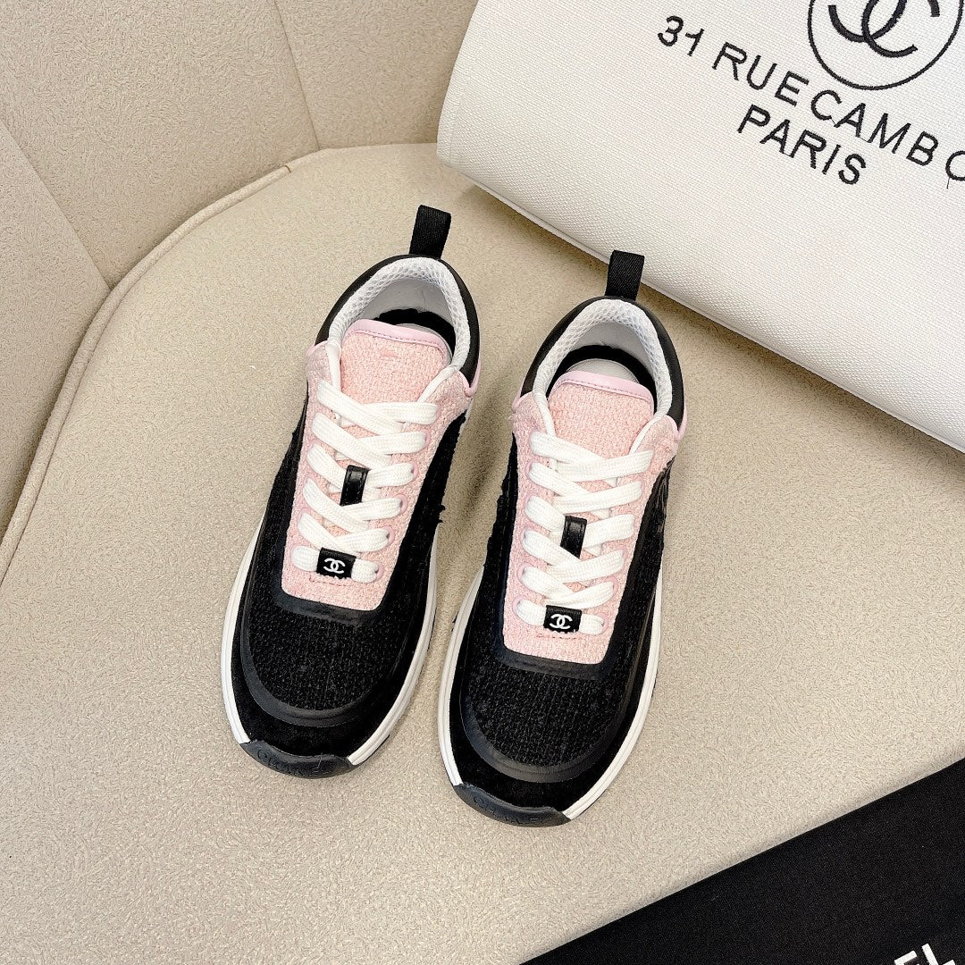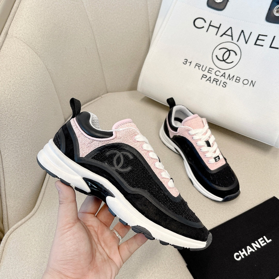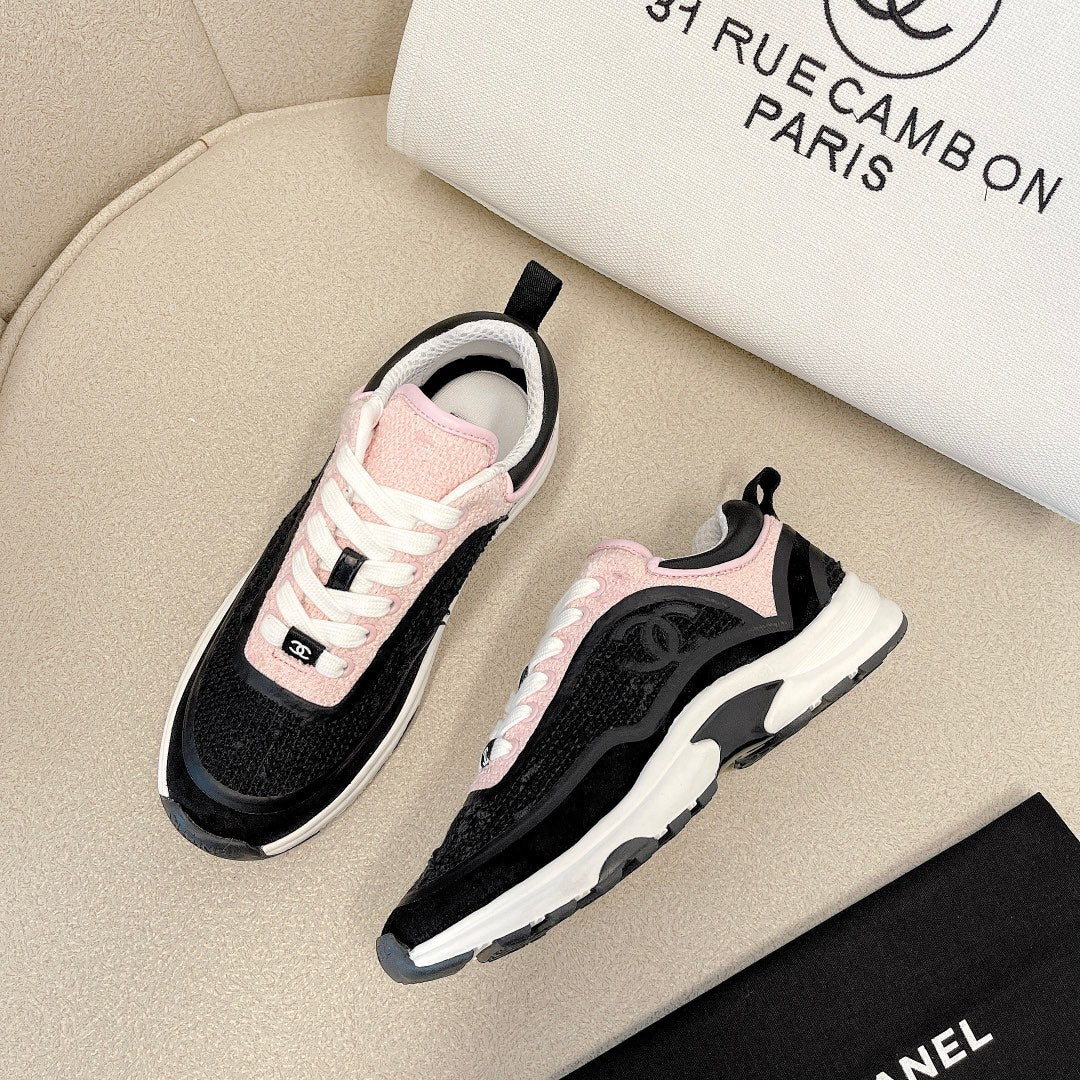 CC Low Top Sneakers Black & Pink Tweed Suede 527566