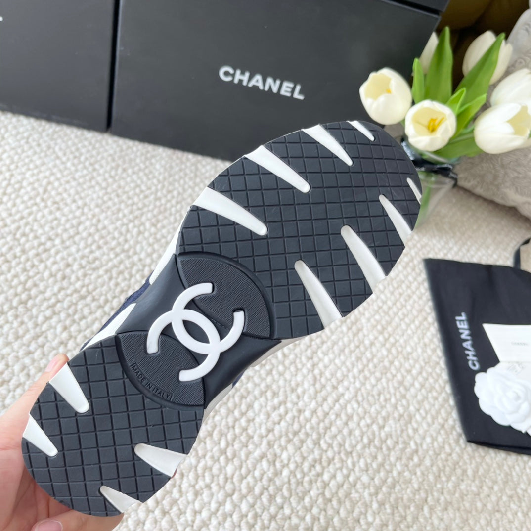 CC SNEAKER IN NAVY BLUE WOOL TWEED AND SUEDE