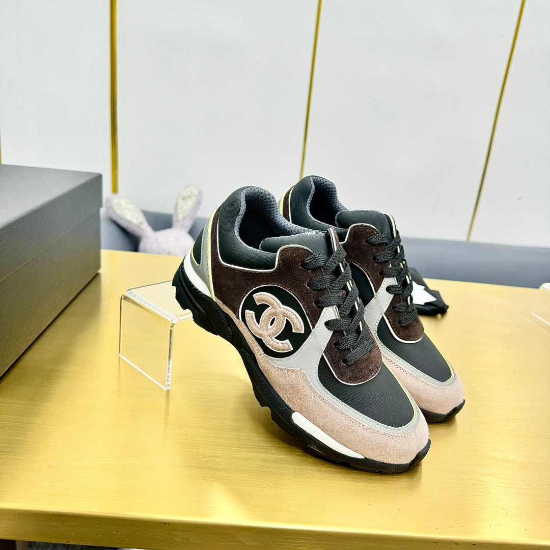 cc womens sneaker in black white calfskin and beige brown suede 137614